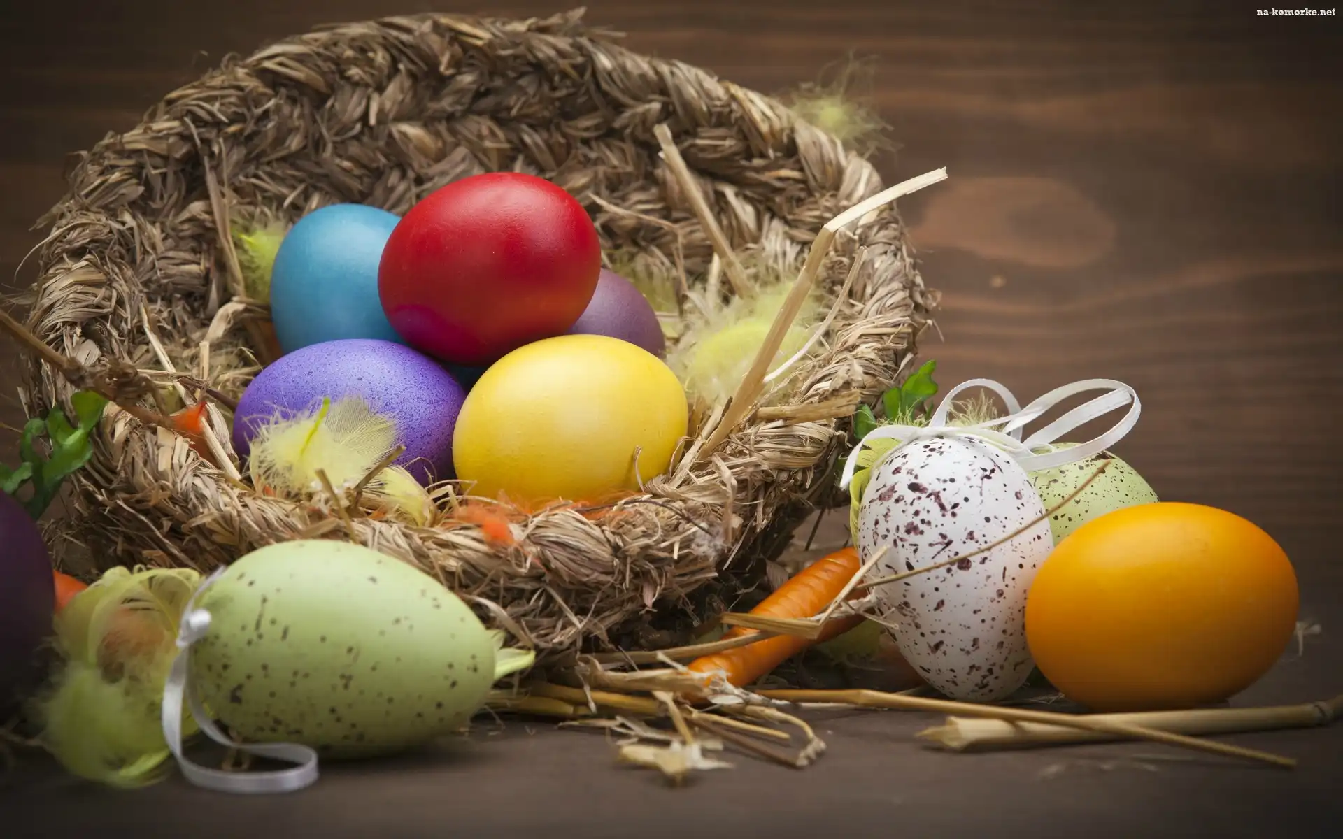Koszyk, Pisanki, Kolorowe, Wielkanocna, Piórka, Dekoracja na Komórkę