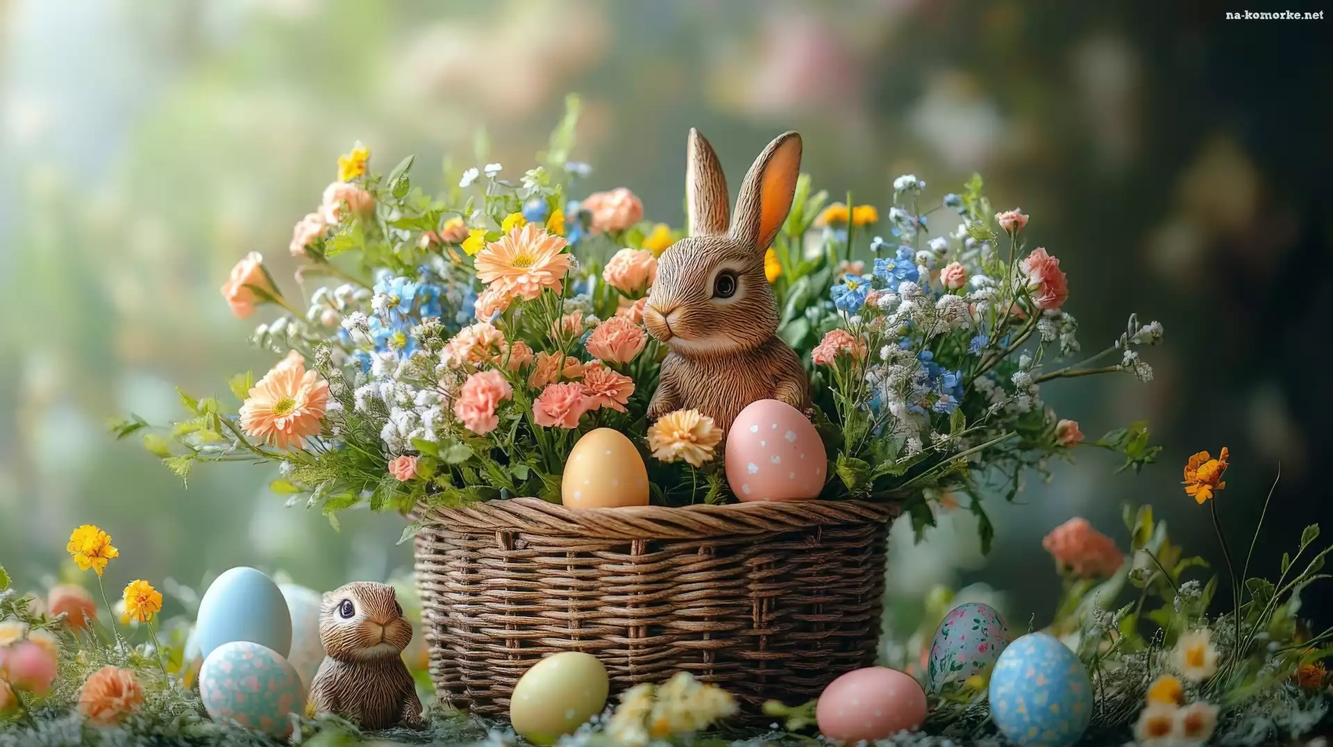 Wielkanoc, Koszyk, Pisanki, Zajączek, Kwiaty na Komórkę
