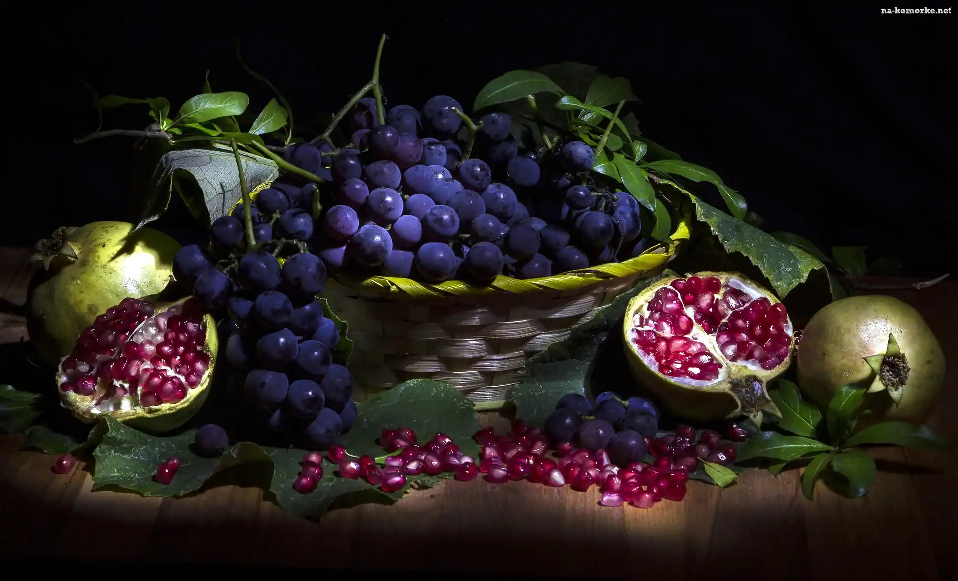 Koszyk, Kompozycja, Winogrona, Granaty na Komórkę