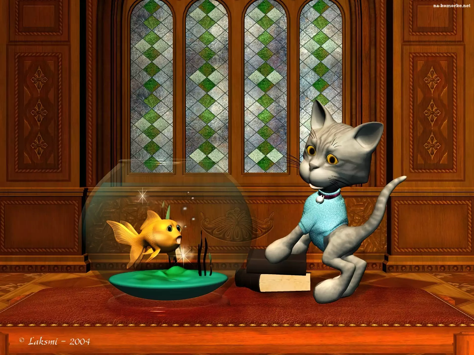 Kot, 3D, Akwarium, Rybka na Komórkę