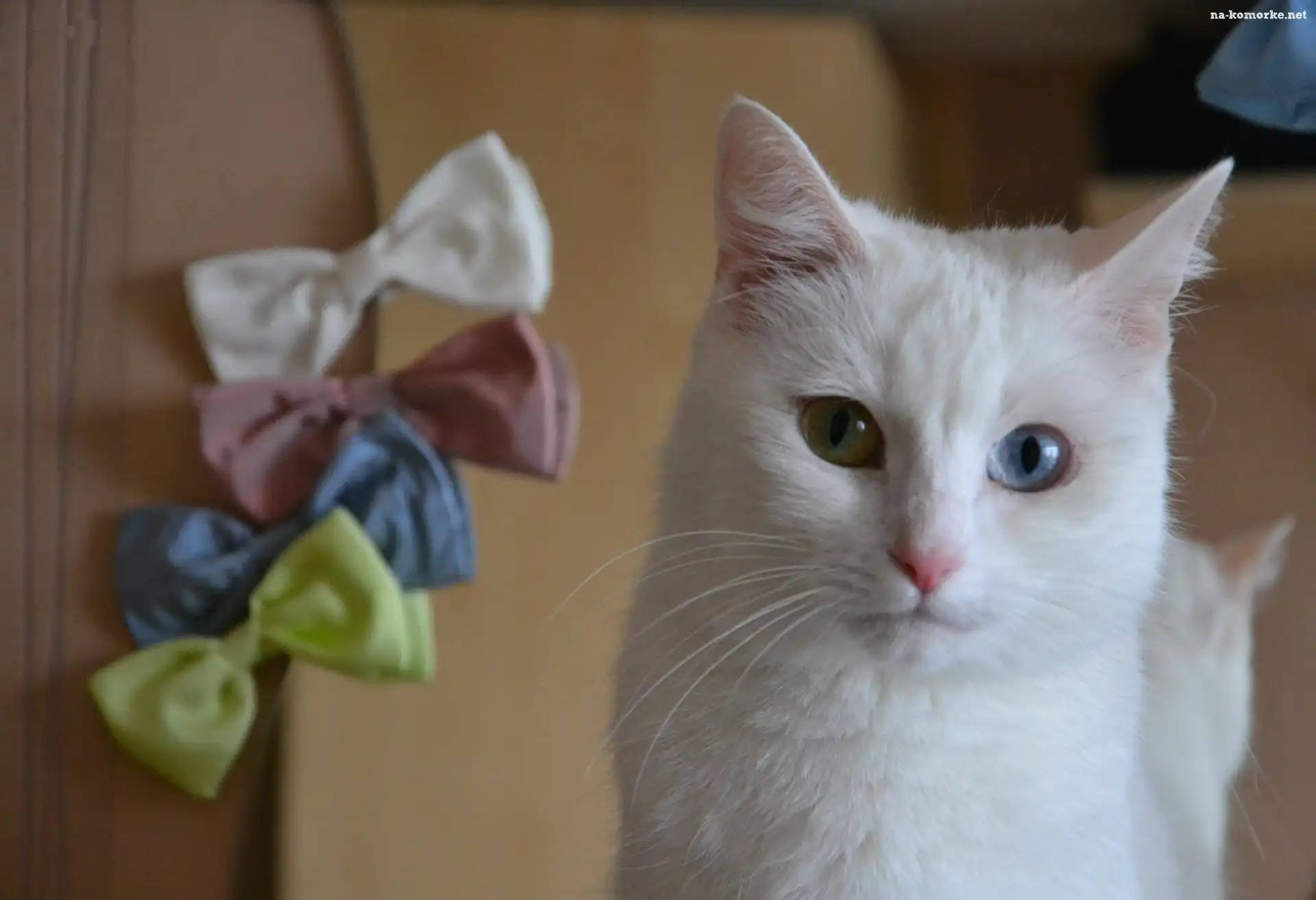 Biały, Kot, Kokardki na Komórkę