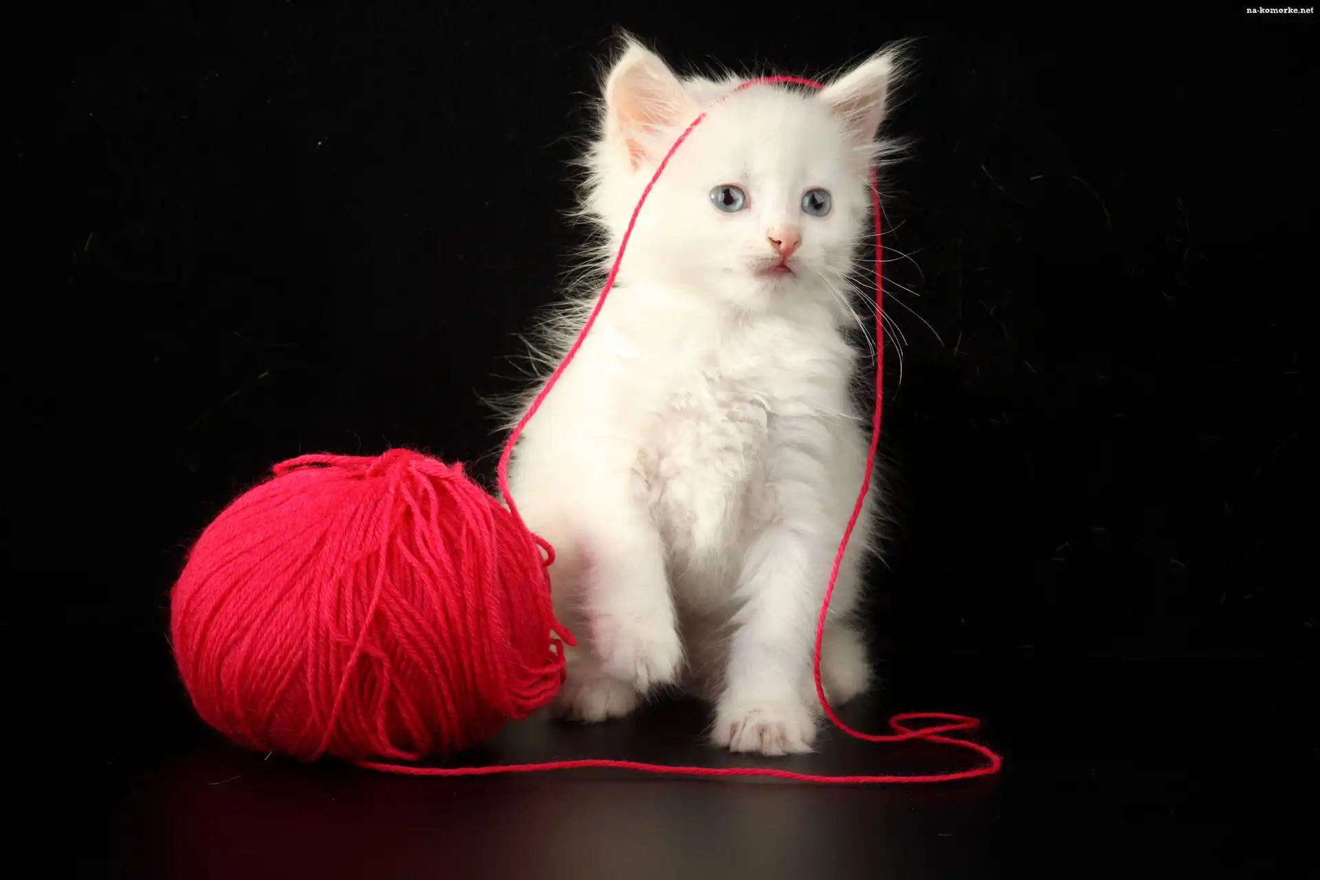 Biały, Kot, Włóczka na Komórkę