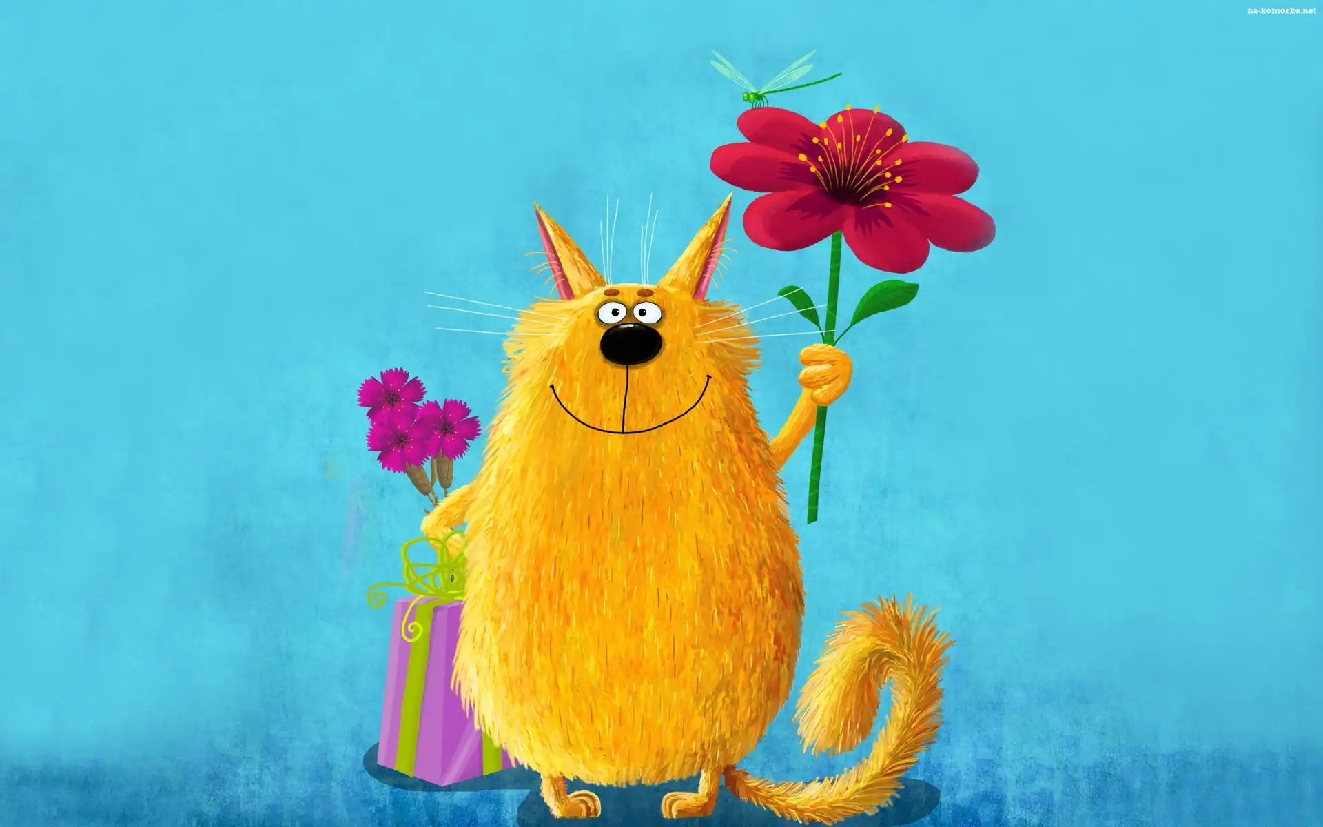 Kot, Kwiaty, Dla Dzieci na Komórkę