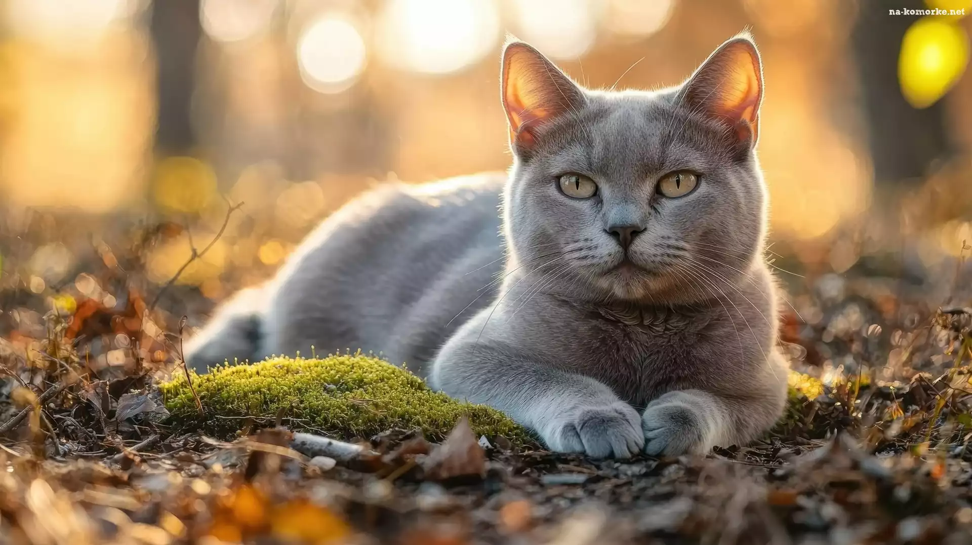Leżący, Mech, Szary, Kot na Komórkę