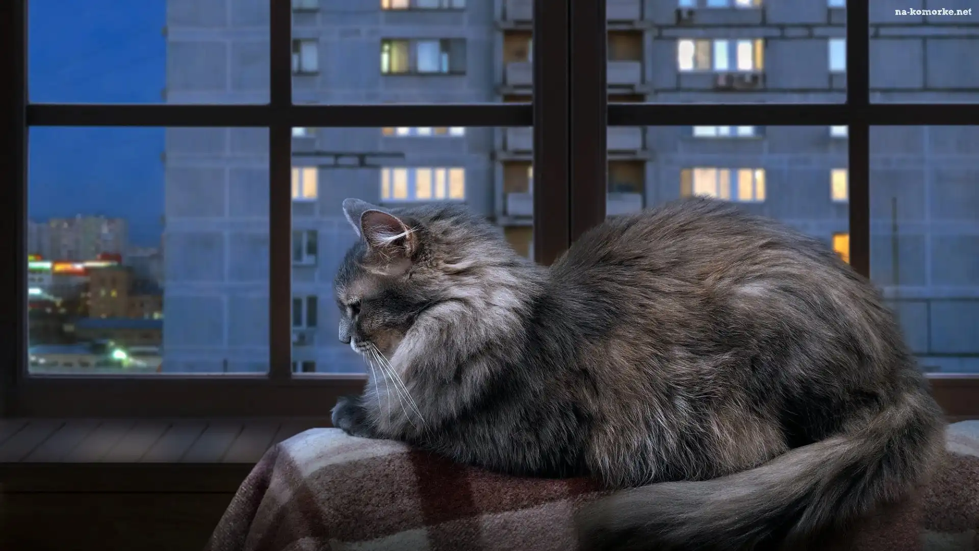 Kot norweski leśny, Koc, Okno, Parapet na Komórkę