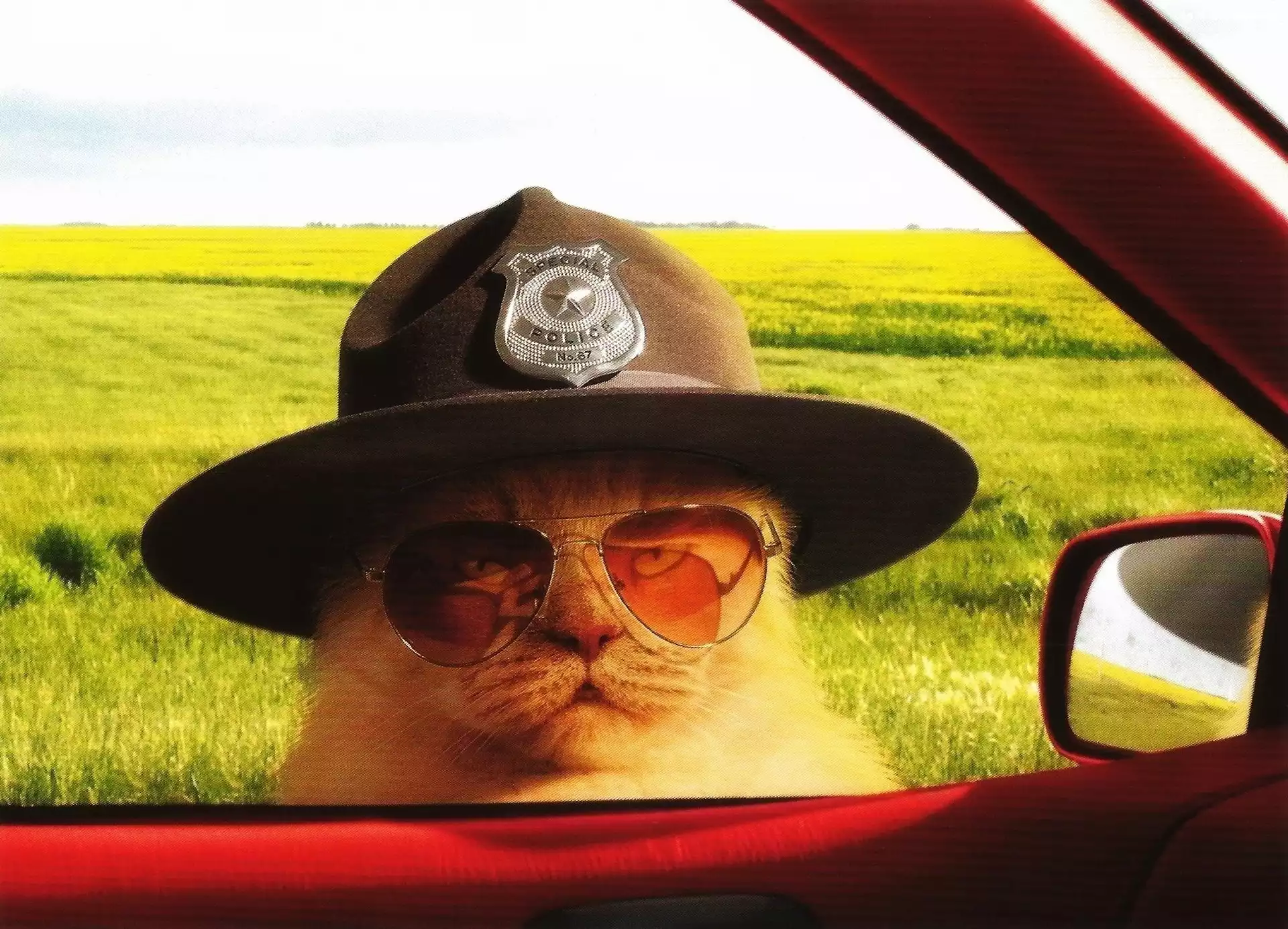 Kot, Policjant, Okulary, Kapelusz na Komórkę