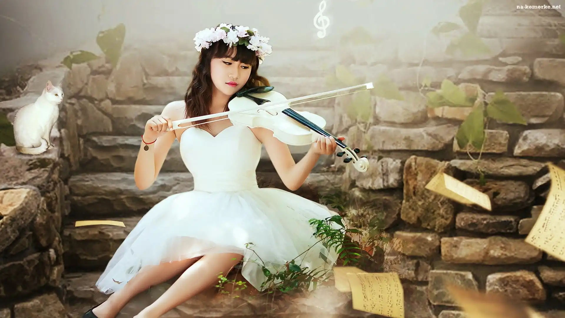 Kot, Kobieta, Sukienka, Skrzypce, Mur na Komórkę