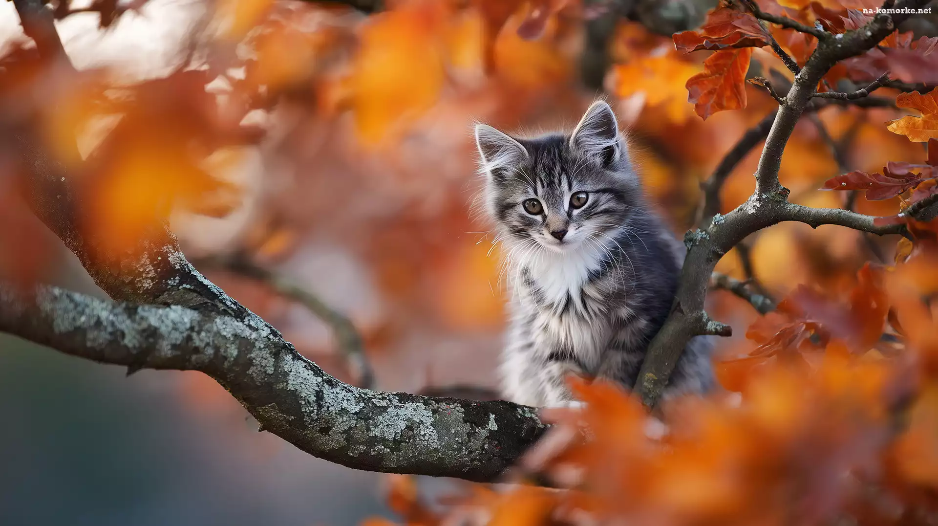 Liście, Grafika, Szaro-biały, AI, Konar, Jesienne, Kot na Komórkę