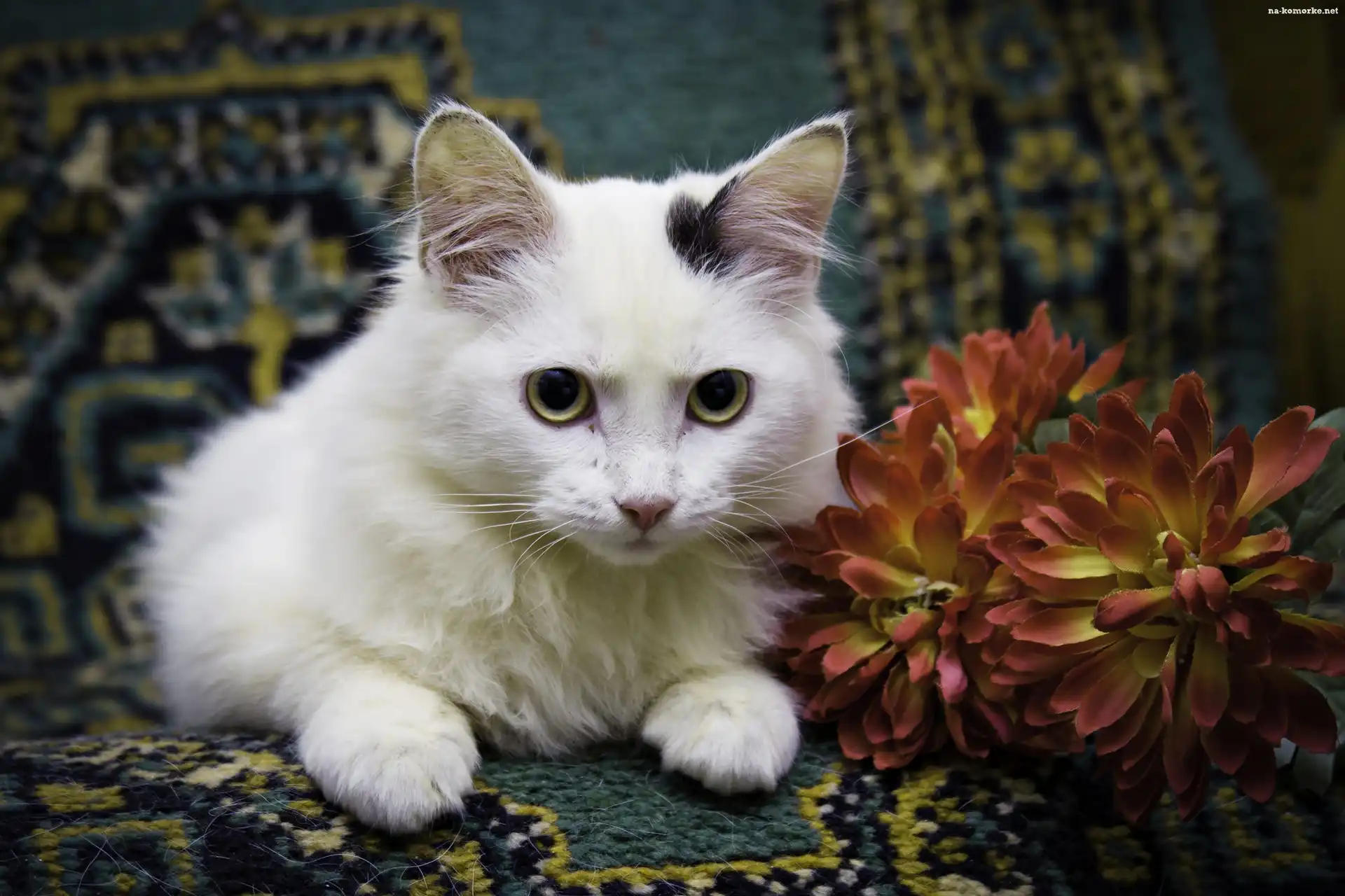 Biały, Kotek, Kwiat na Komórkę