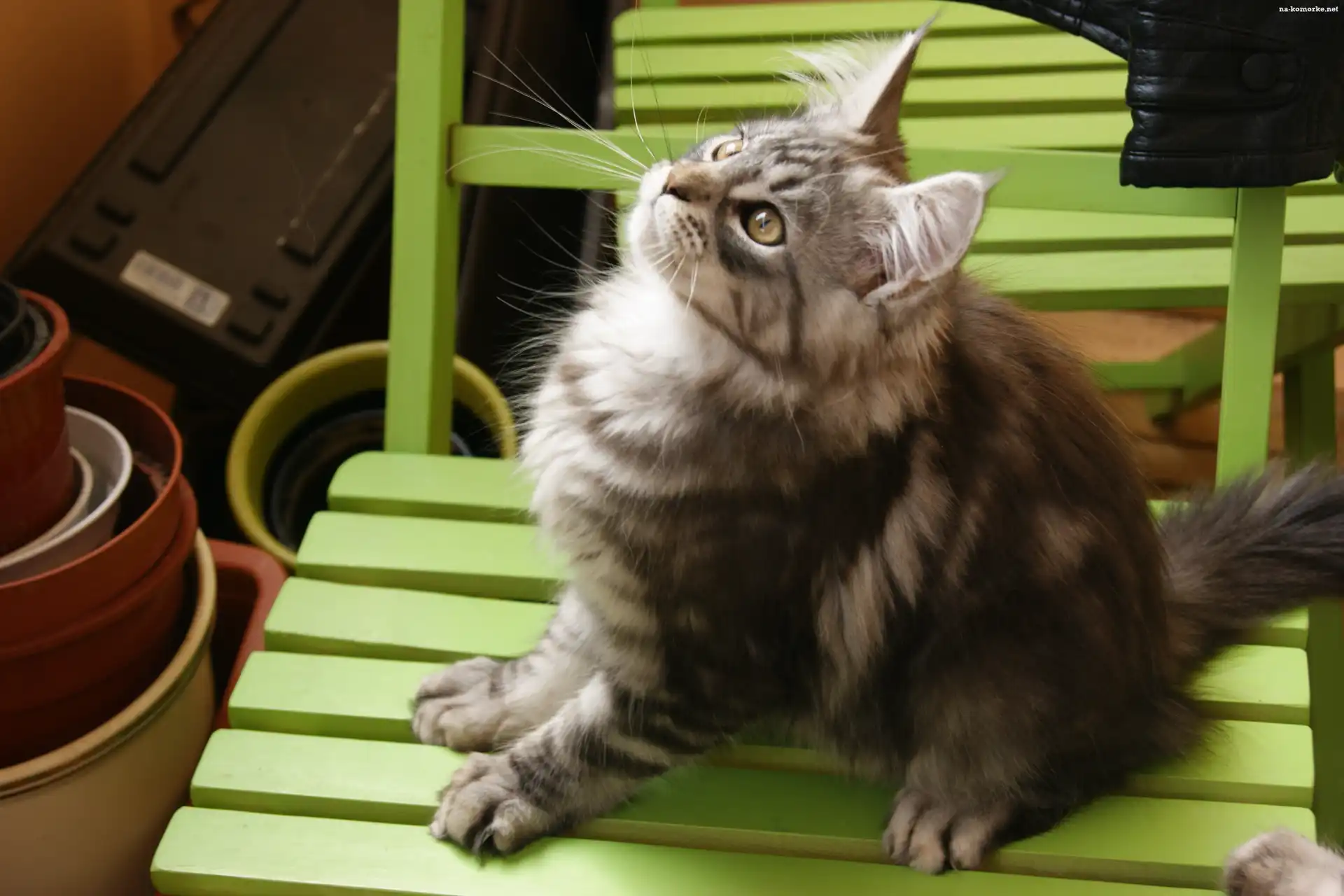 Kotek, Maine Coon, Krzesło na Komórkę