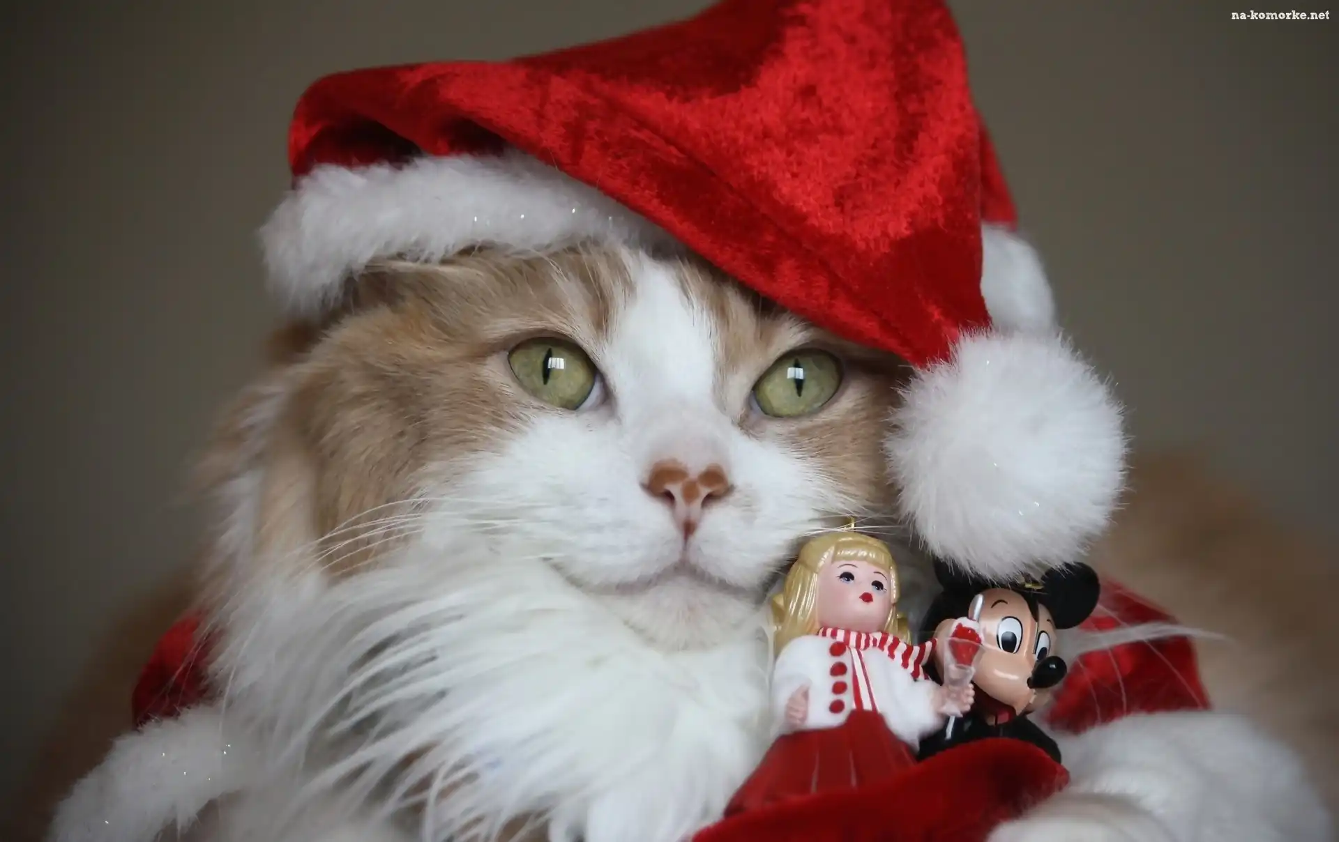 Kotek, Zabawki, Czapka, Mikołaja na Komórkę