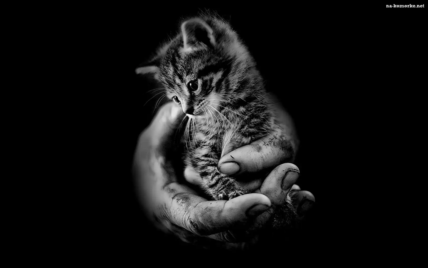Mały, Kotek, Dłonie na Komórkę