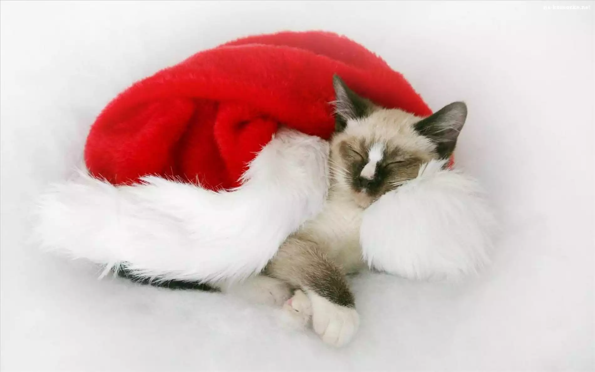 Śpiący, Mikołaja, Kotek, Czapka na Komórkę