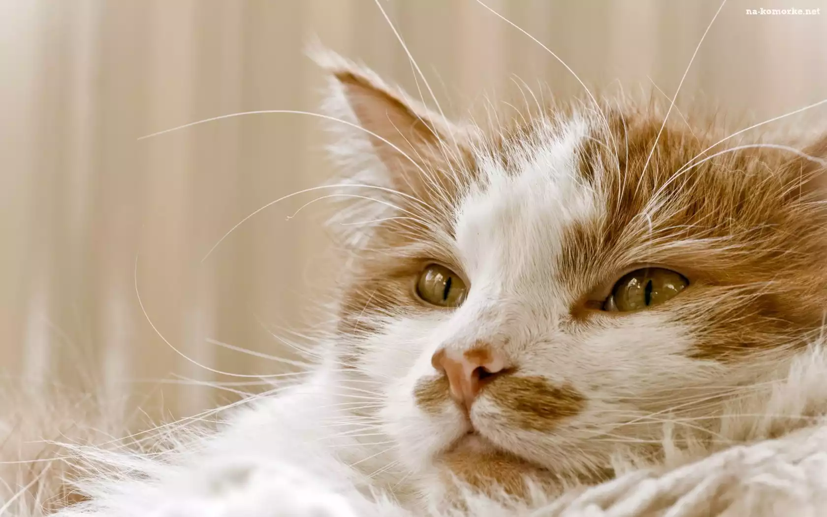 Kotek, Biały, Rudo, Portret, Słodki, Wąsy na Komórkę