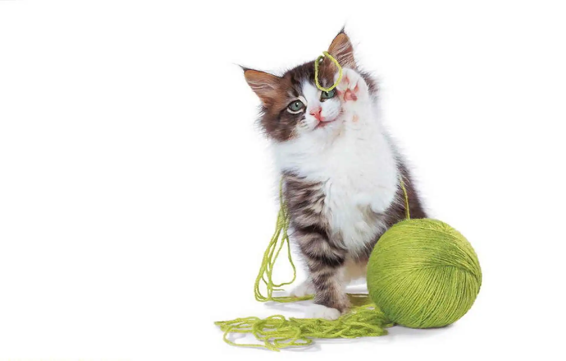 Kotek, Zabawa, Zielona, Włóczka na Komórkę