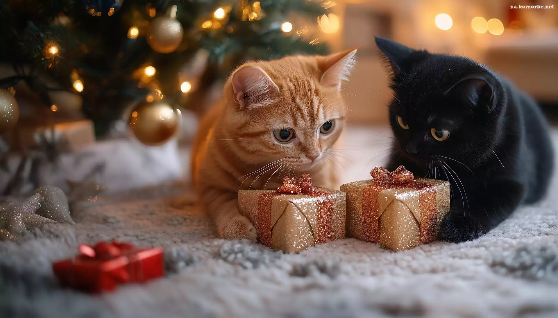 Prezenty, Choinka, Dwa, Koty na Komórkę