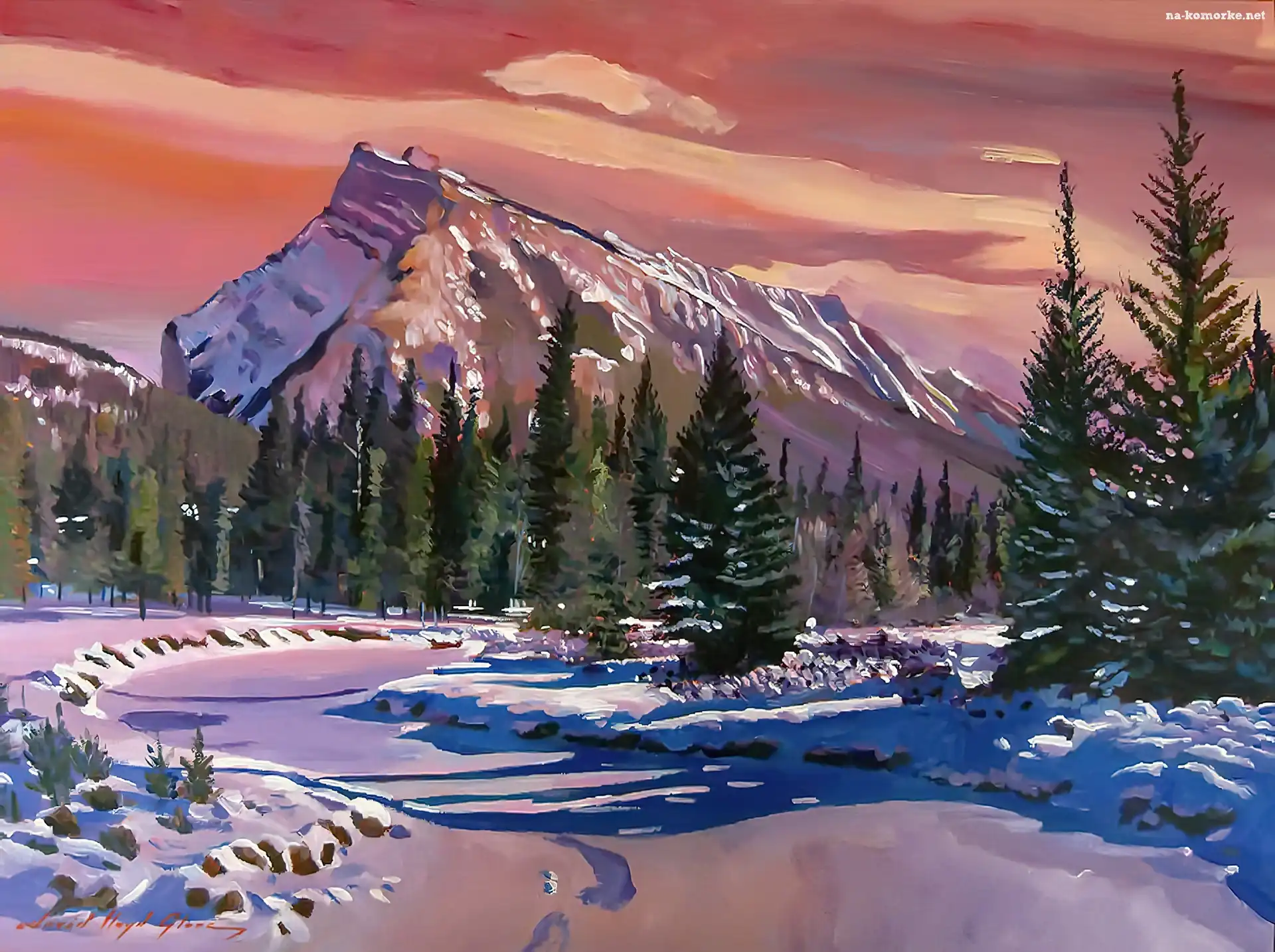Krajobraz, Obraz, Góry, Zima na Komórkę