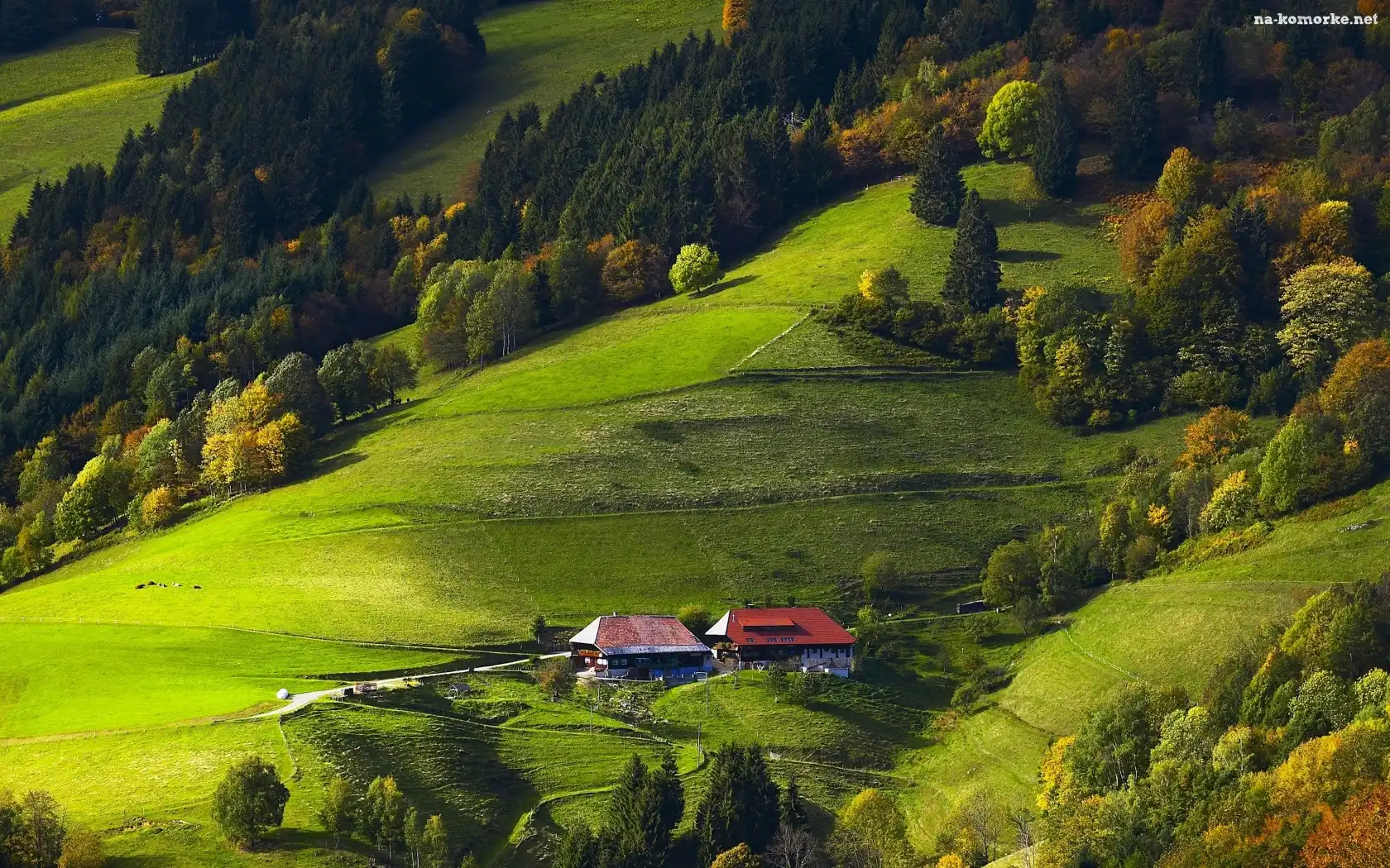 Krajobraz, Domy, Lasy, Pola na Komórkę
