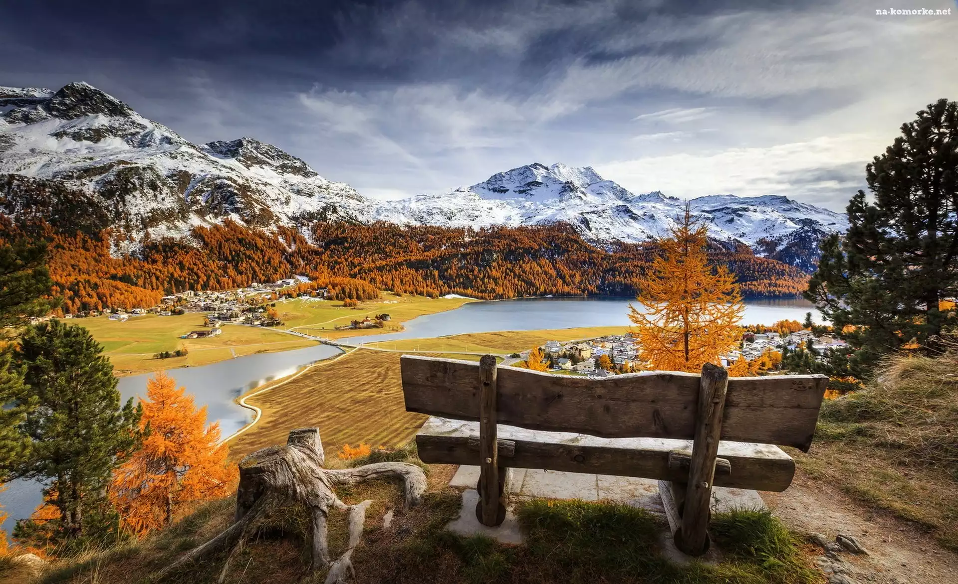 Krajobraz, Góry, Jezioro, Lasy, Ławka na Komórkę