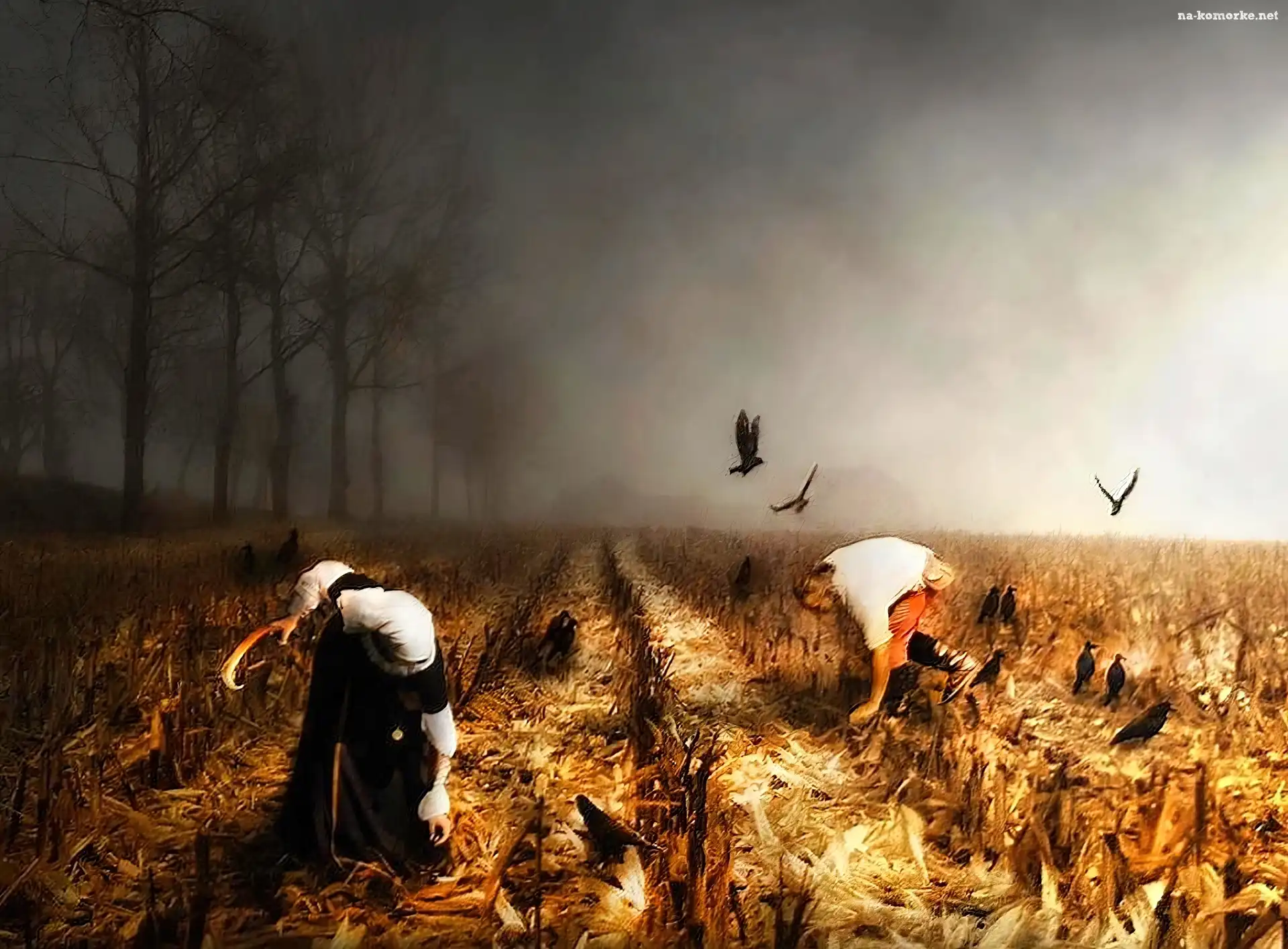 Krajobraz, Ludzie, Prace, Polowe na Komórkę