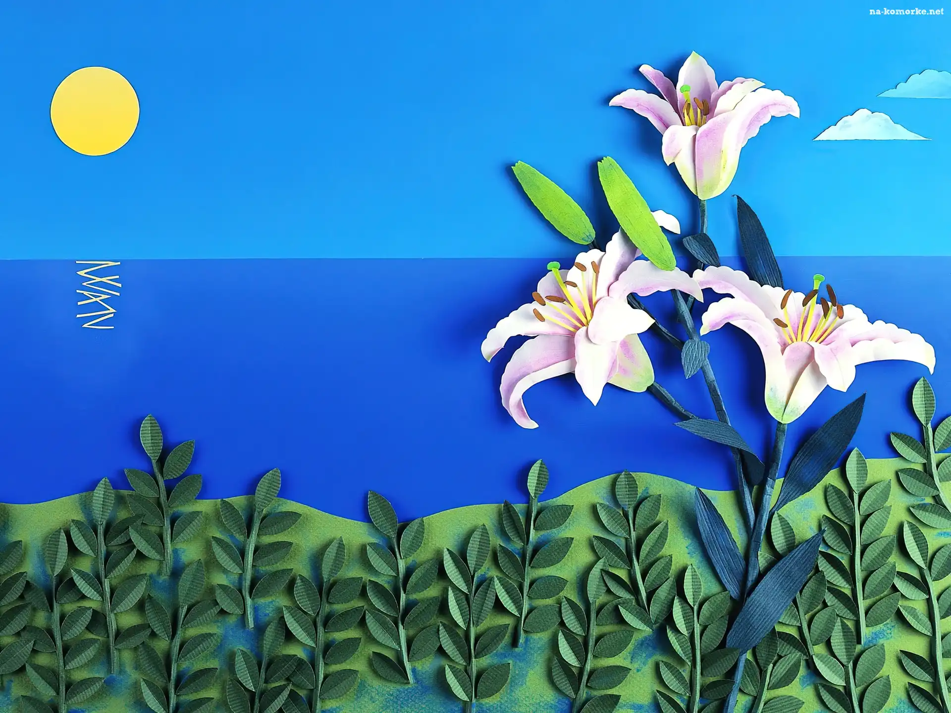 Krajobraz, Papier Art, Słońce, Lilie na Komórkę