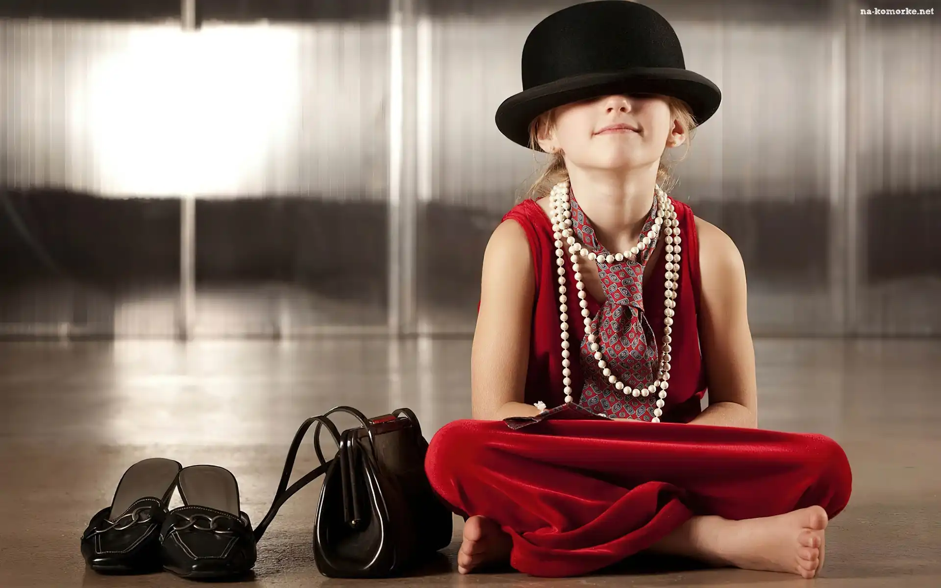Krawat, Melonik, Dziewczynka, Torebka, Korale, Buty na Komórkę