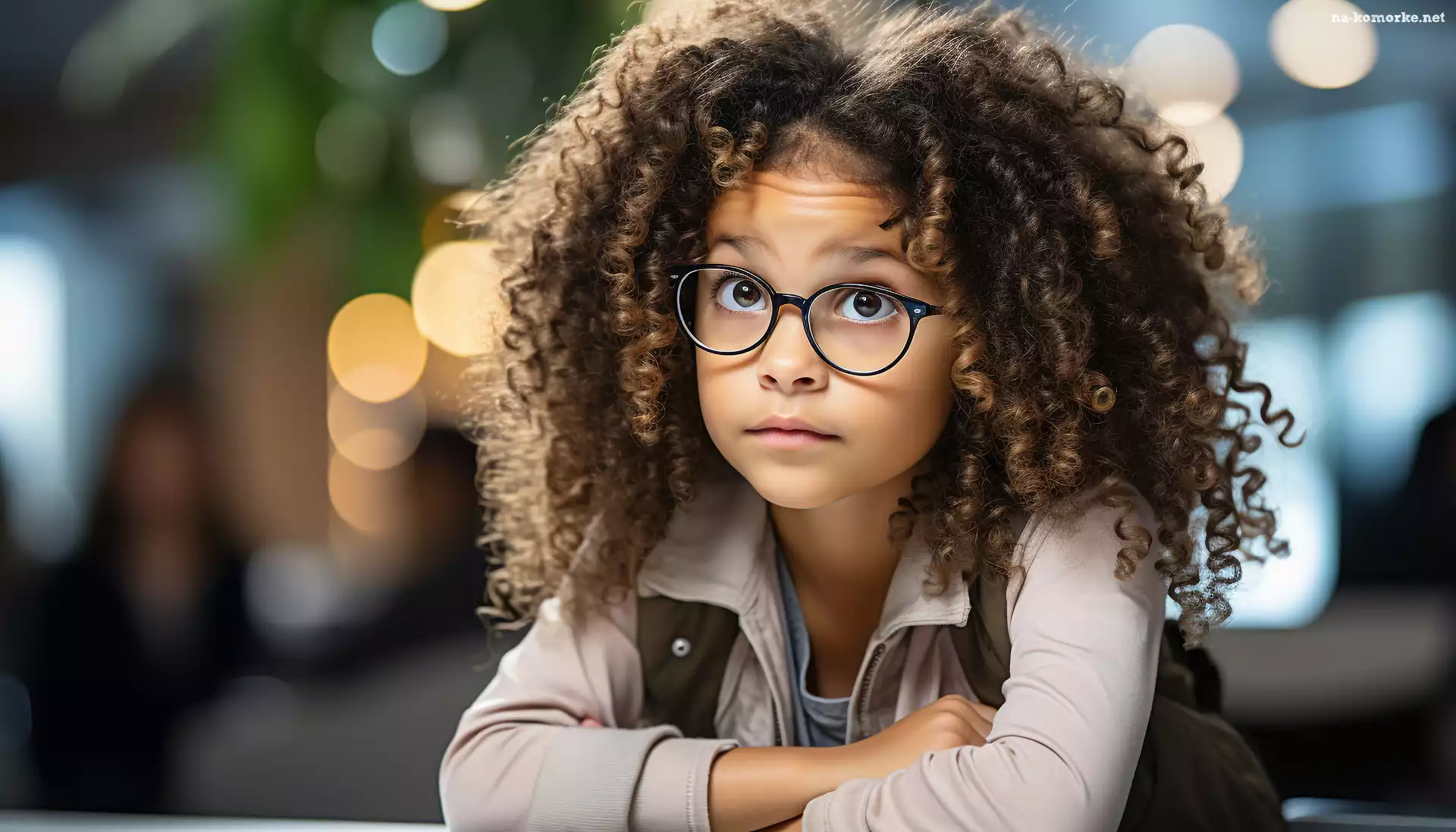 Zamyślona, Kręcone, Włosy, Dziewczynka, Okulary na Komórkę