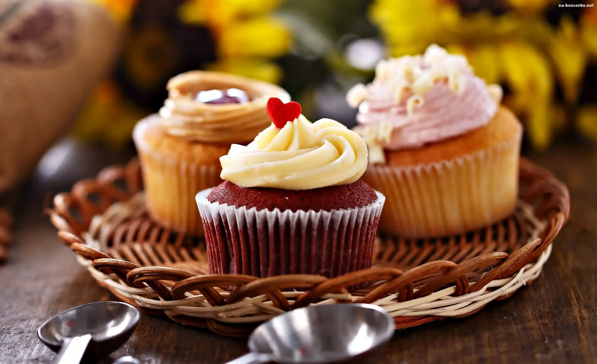 Krem, Trzy, Jedzenie, Talerz, Babeczki, Wiklinowy na Komórkę