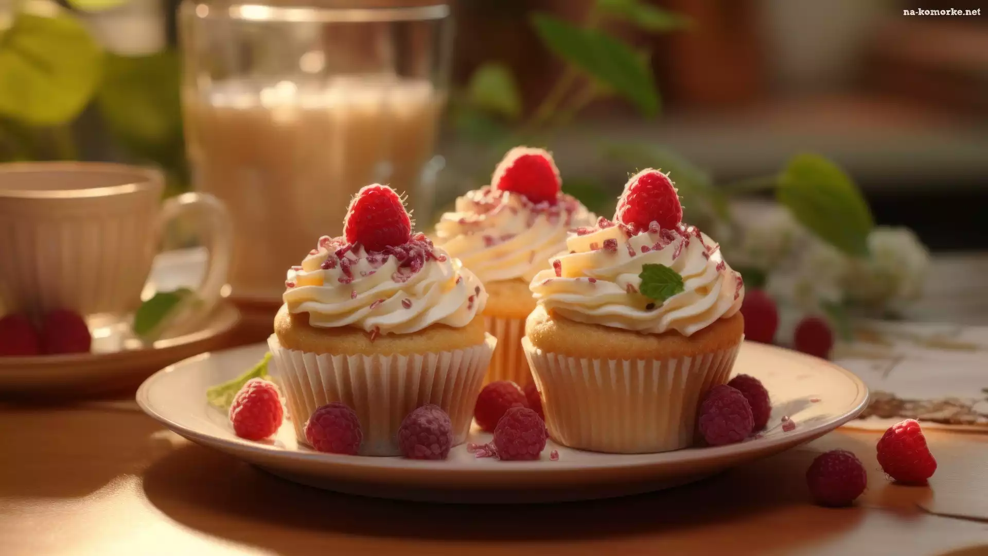Trzy, Krem, Maliny, Babeczki, Talerz na Komórkę