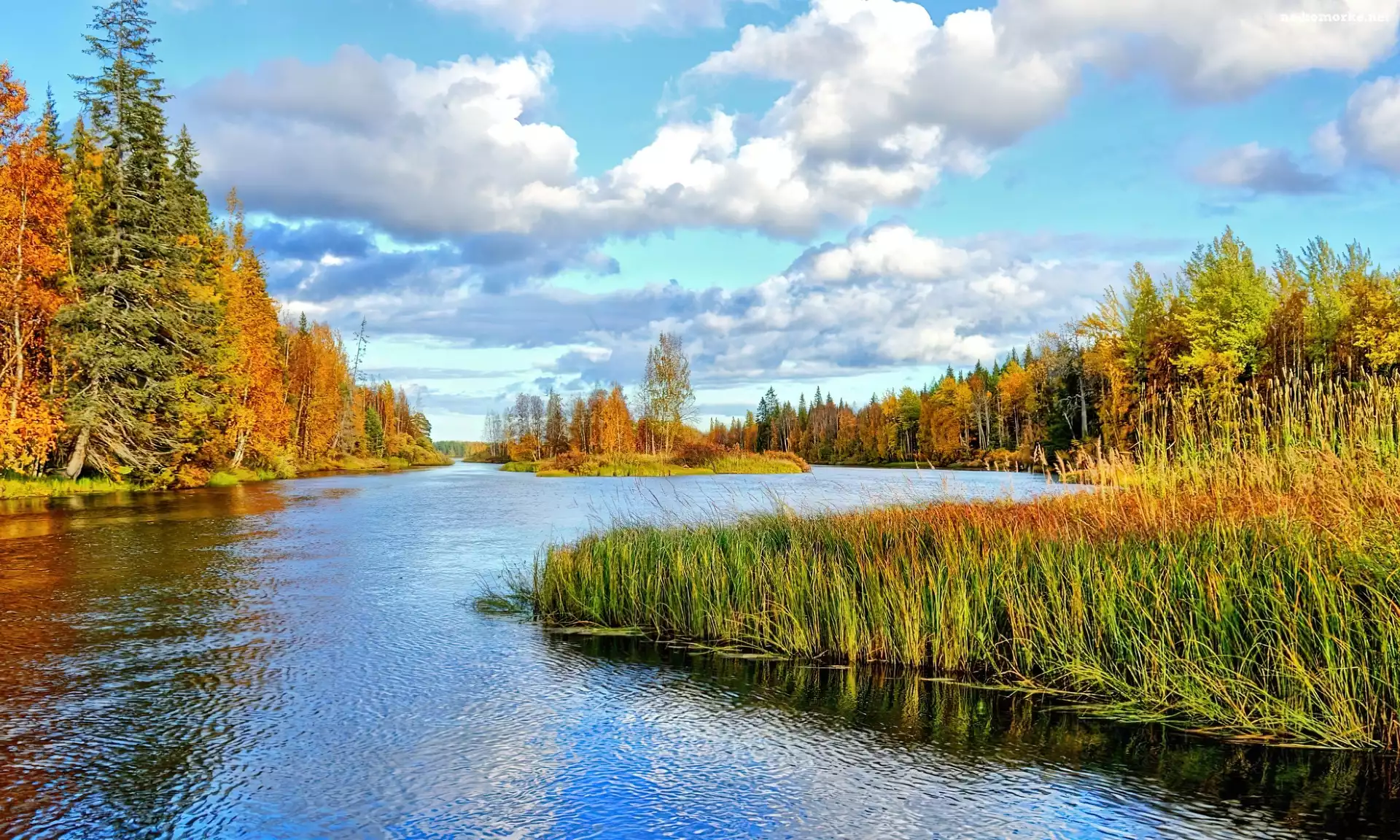 Kręta, Chmury, Rzeka, Las na Komórkę