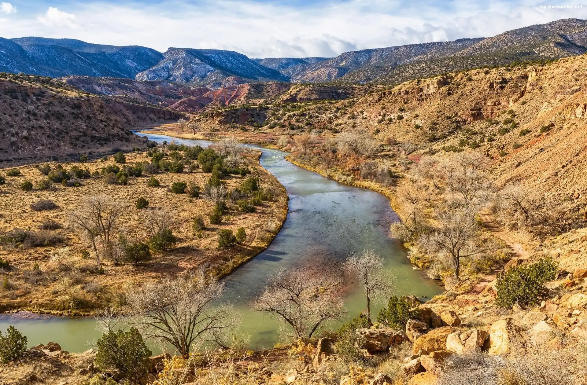 Kręta, Drzewa, Rzeka, Góry na Komórkę
