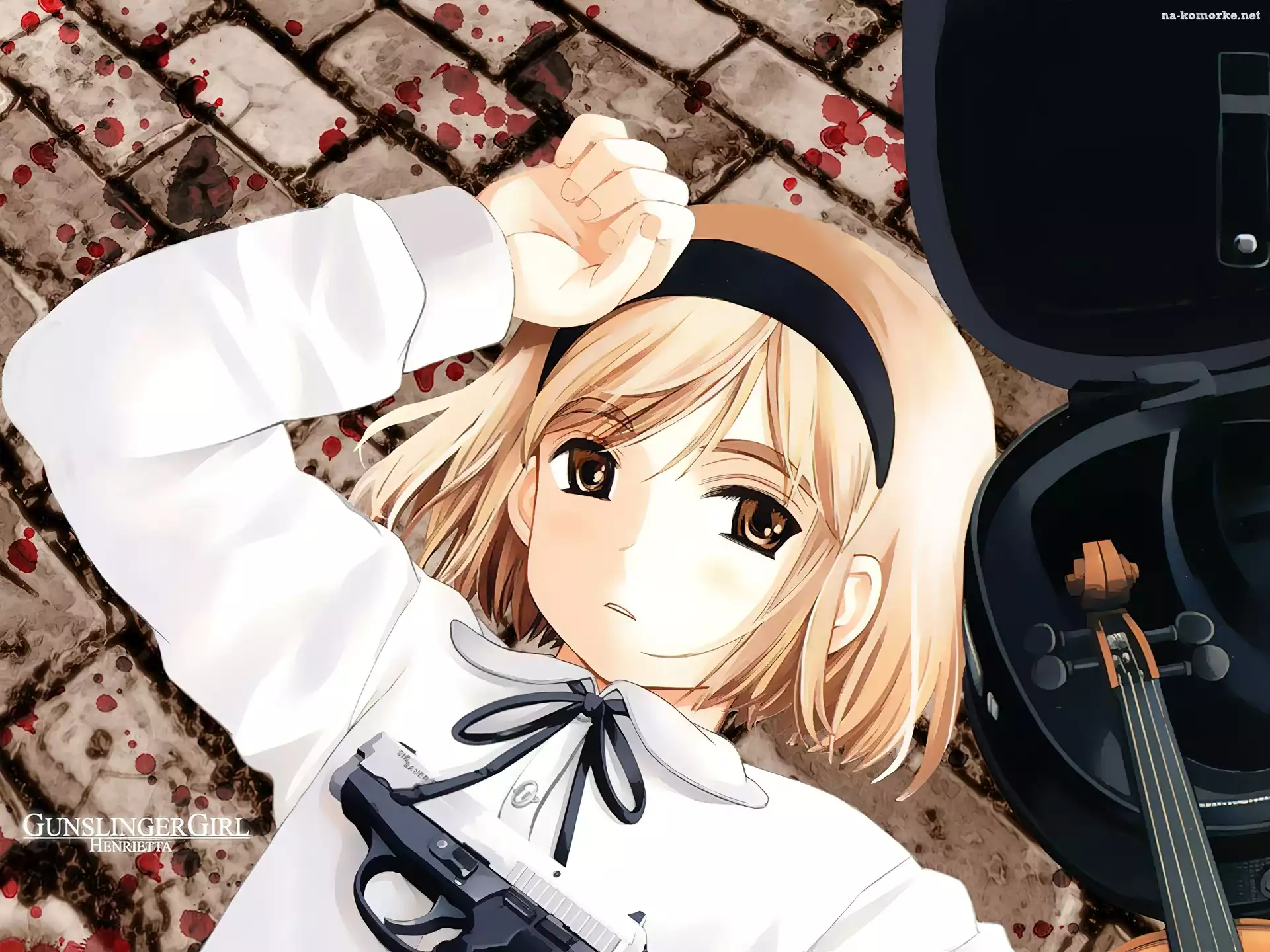 krew, Gunslinger Girl, dziewczyna, skrzypce, broń na Komórkę