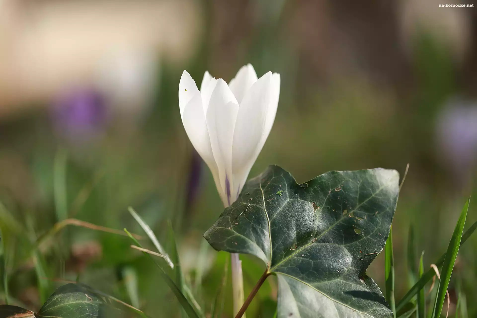 Liść, Kwiat, Biały, Krokus na Komórkę