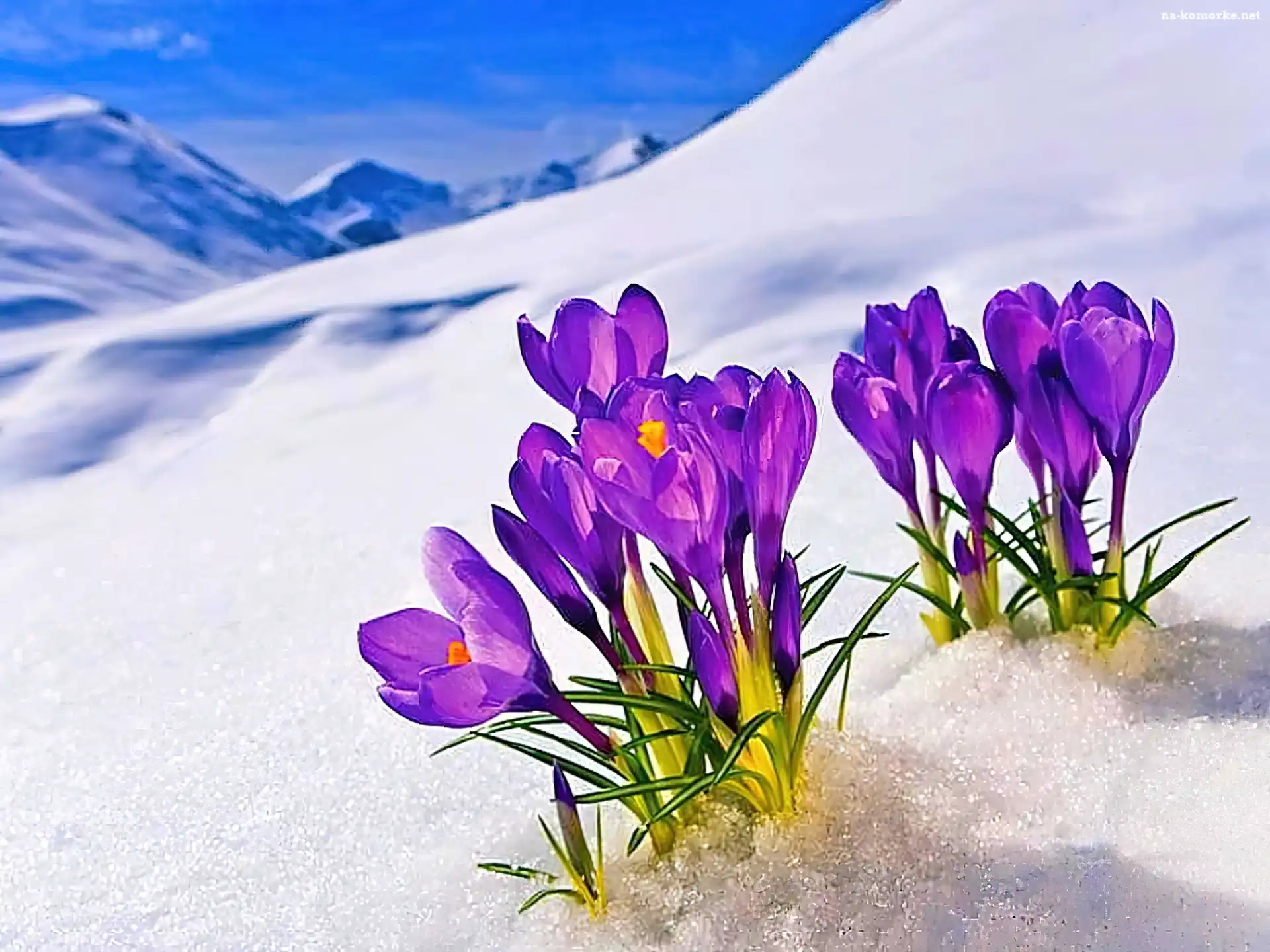 Fioletowe, Krokusy, Śnieg na Komórkę