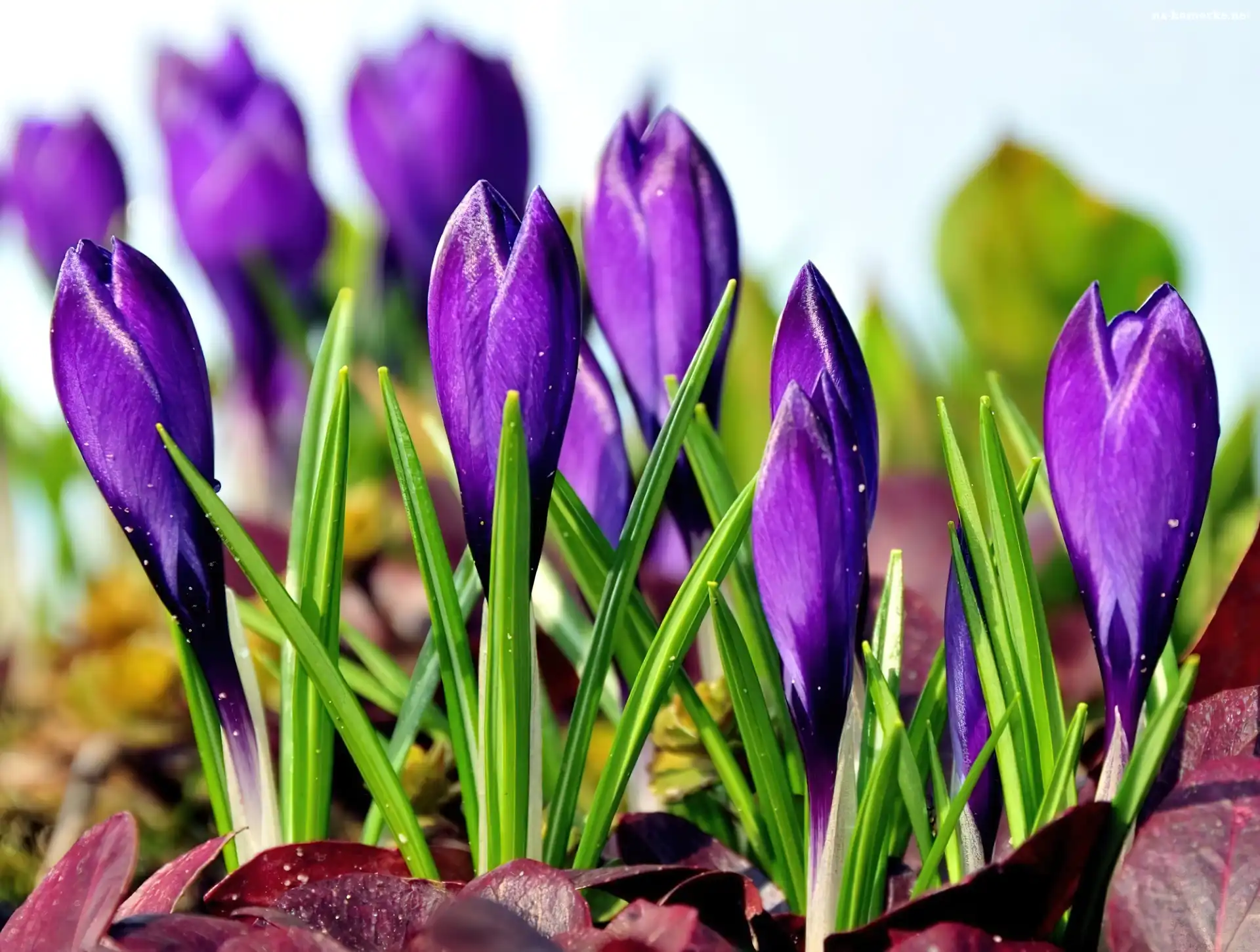 Fioletowe, Krokusy, Wiosna na Komórkę