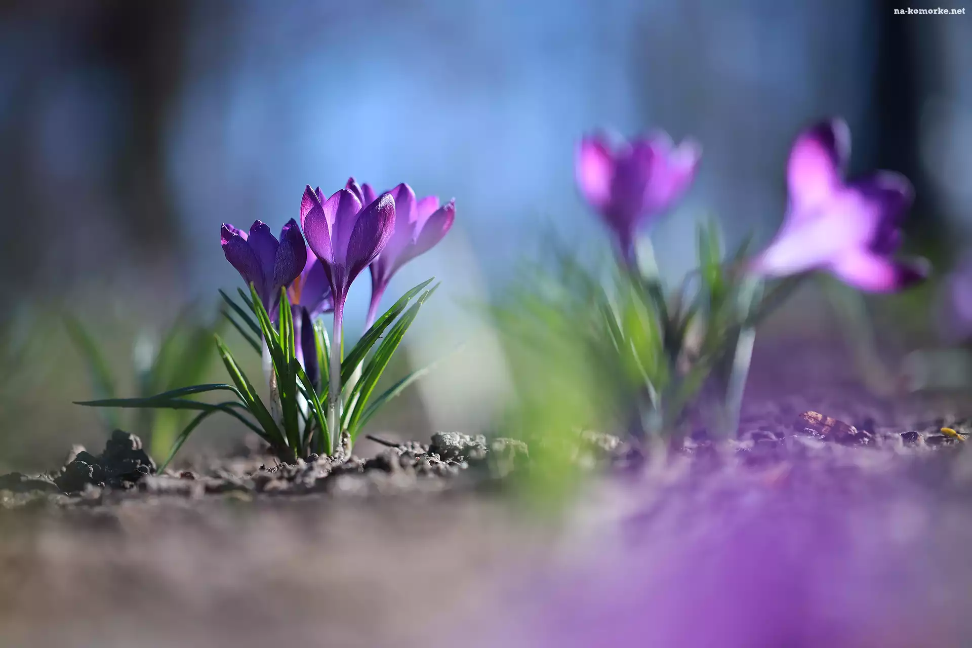 Kępka, Kwiaty, Fioletowe, Krokusy na Komórkę
