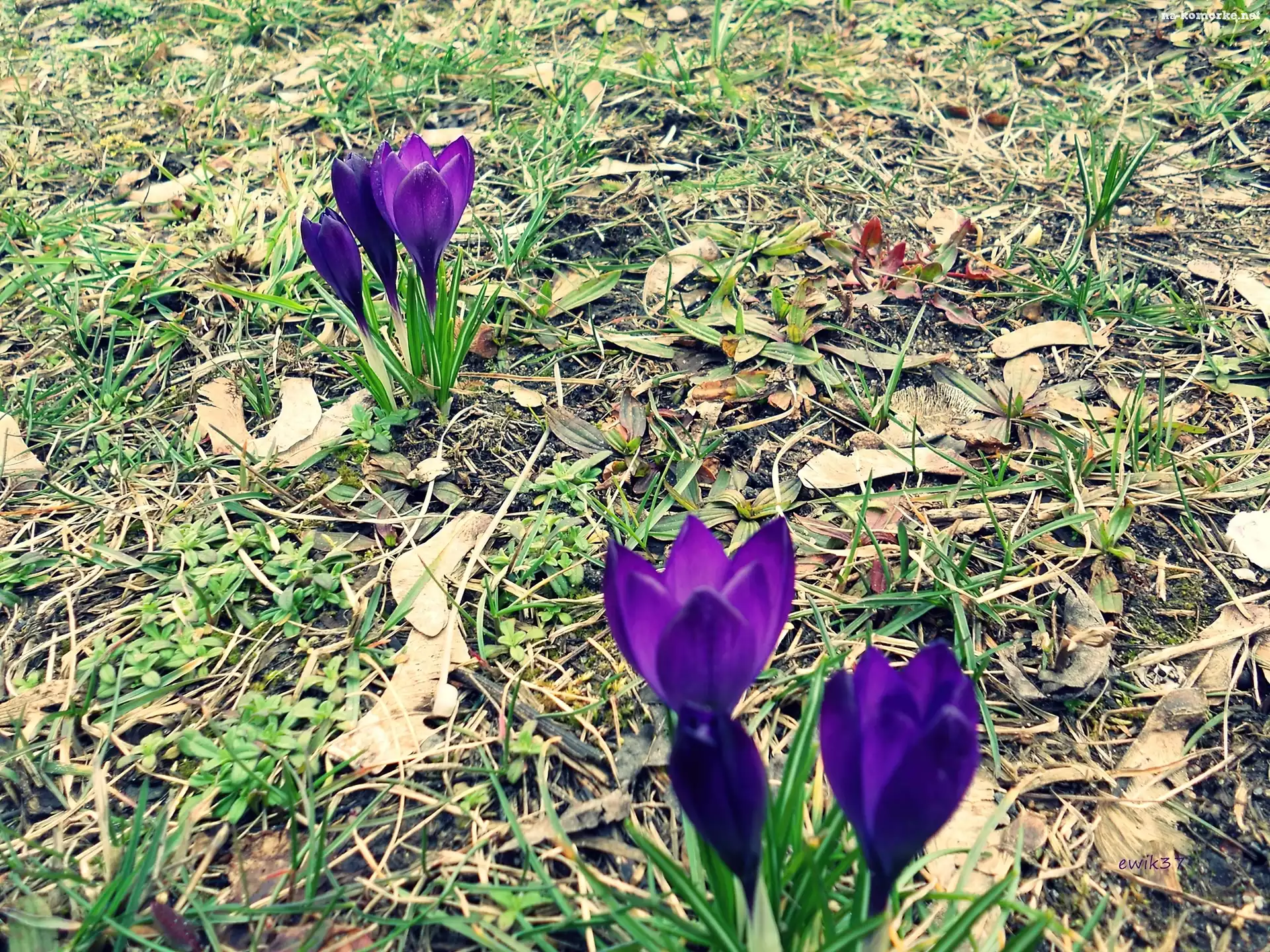 Krokusy, Polana, Kolor, Fioletowy na Komórkę