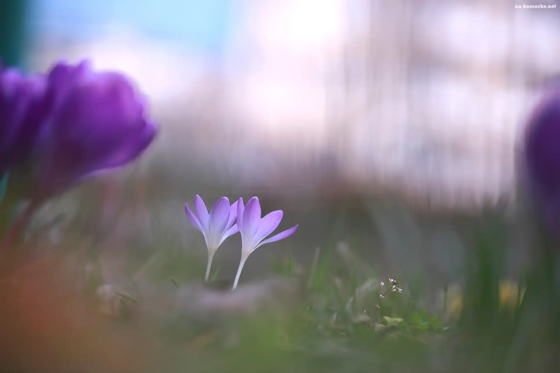 Kwiaty, Fioletowe, Dwa, Krokusy na Komórkę