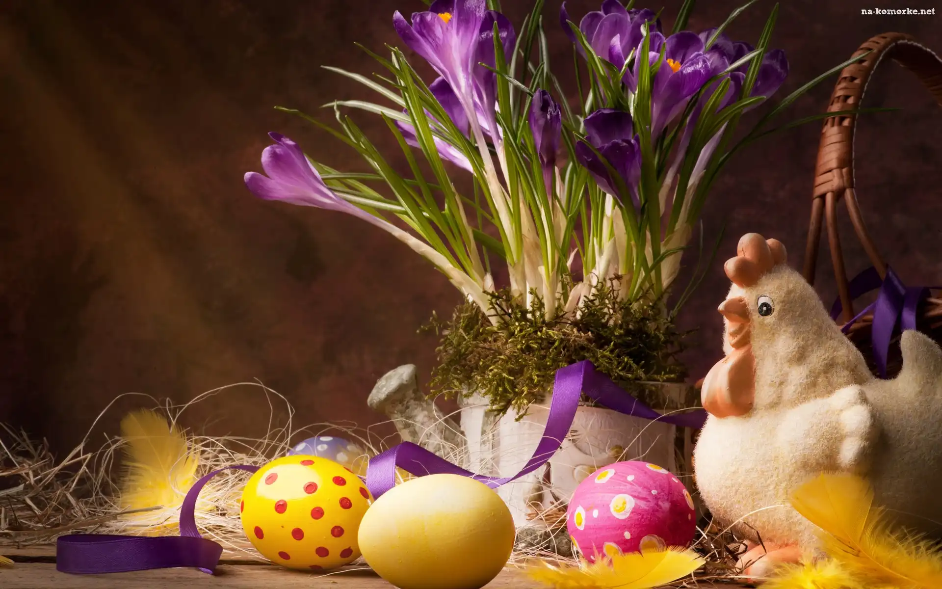 Krokusy, Jajka, Wielkanoc, Pióra, Kwiaty, Figurka na Komórkę