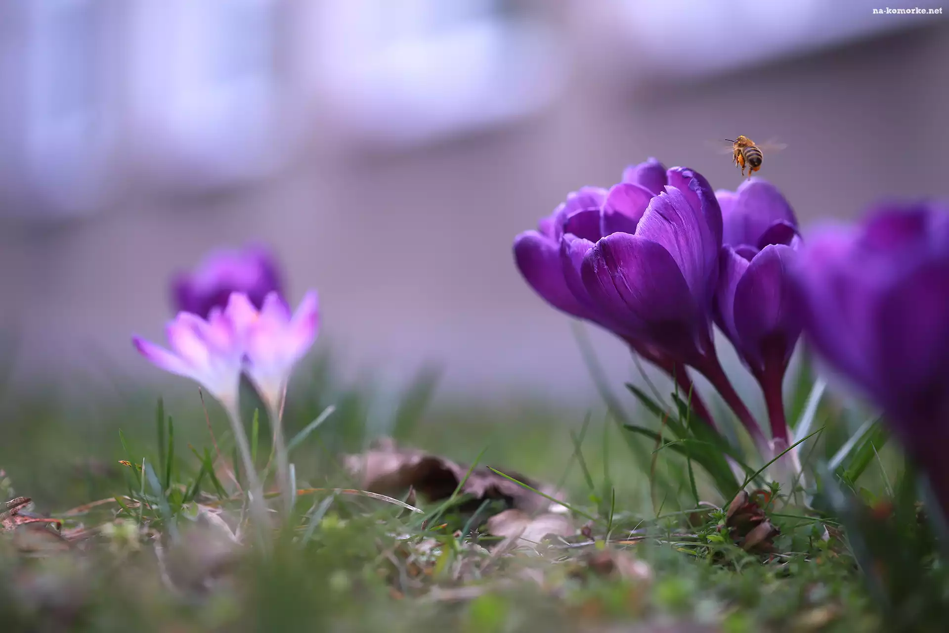 Pszczoła, Owad, Fioletowe, Krokusy na Komórkę