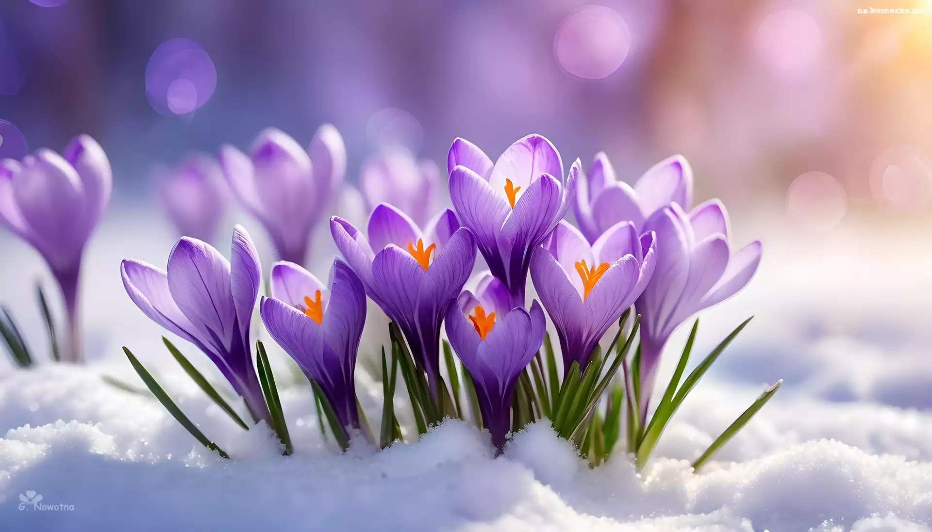 Śnieg, Grafika, Fioletowe, Krokusy na Komórkę