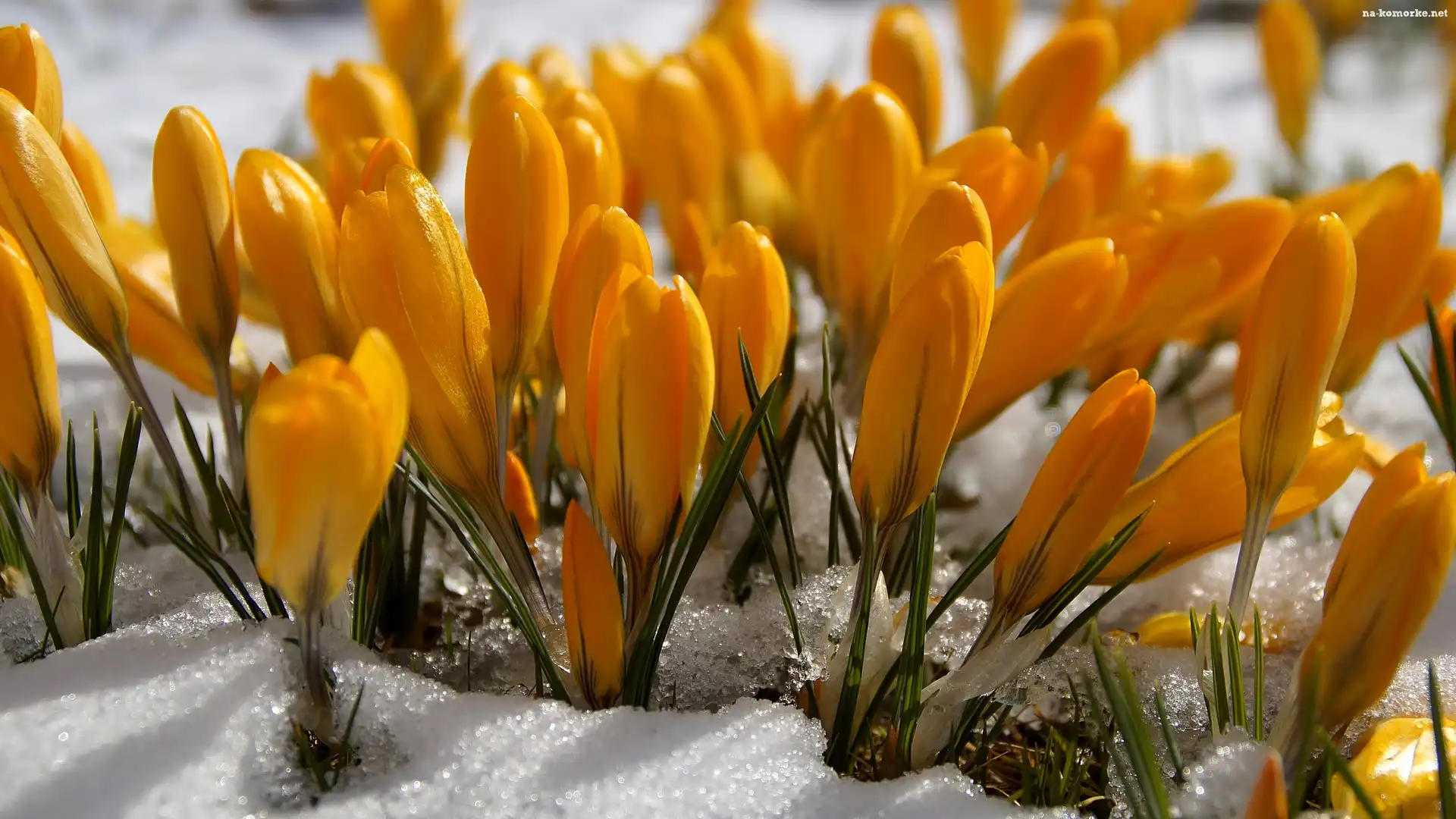 Żółte, Zbliżenie, Krokusy, Śnieg na Komórkę