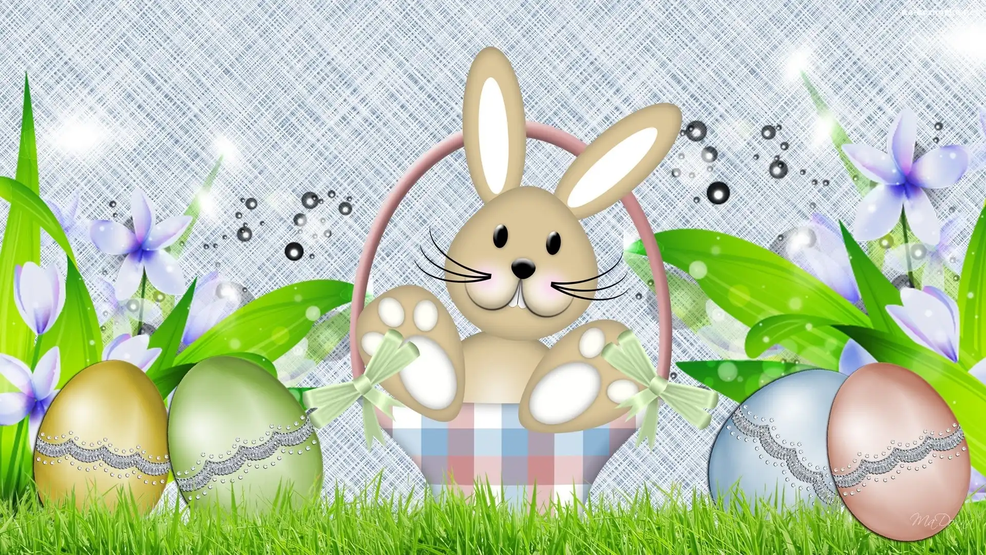 Królik, Kwiaty, Koszyk, Pisanki na Komórkę
