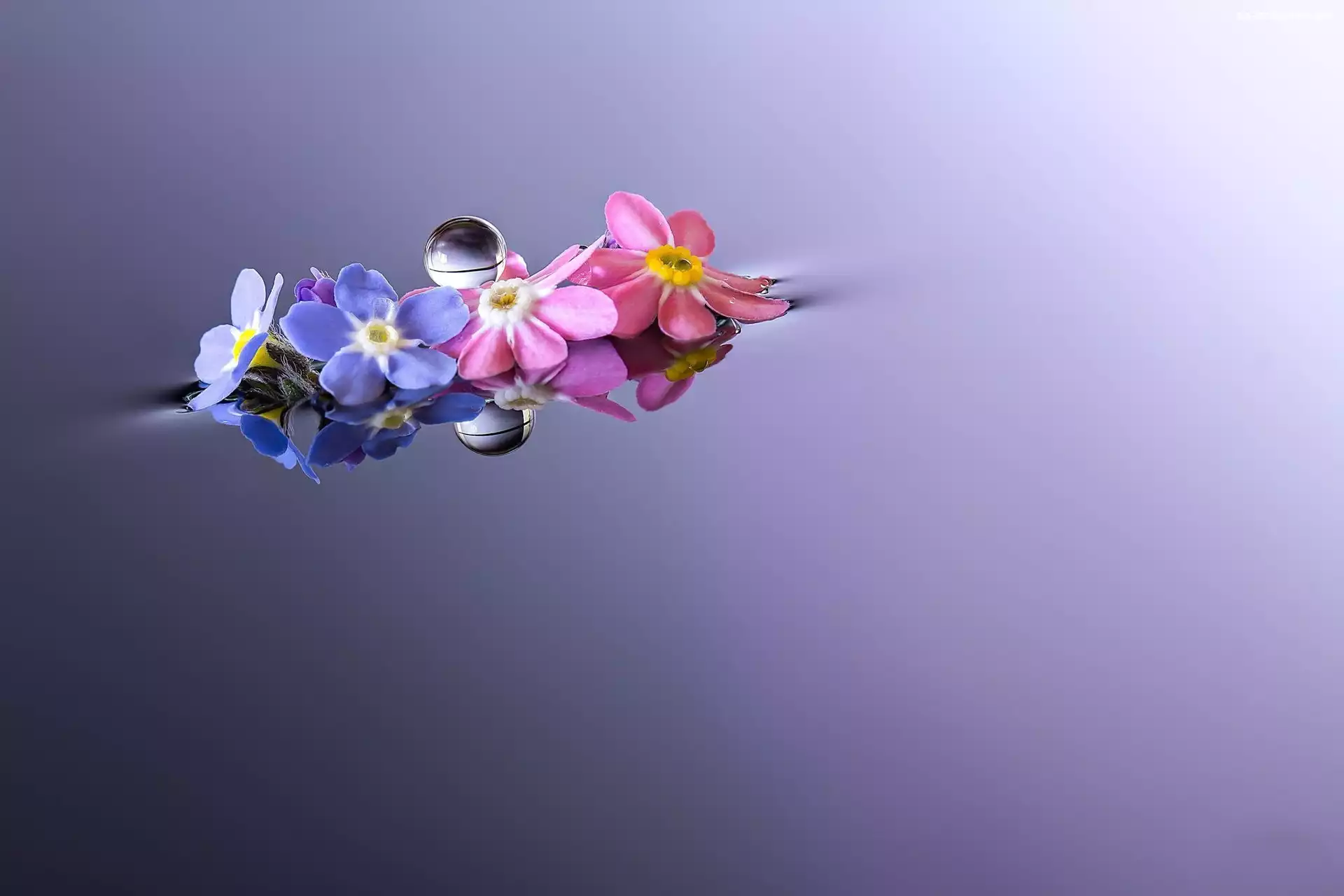 Kropla, Niezapominajka, Kwiaty, Makro, Prymulka, Odbicie na Komórkę