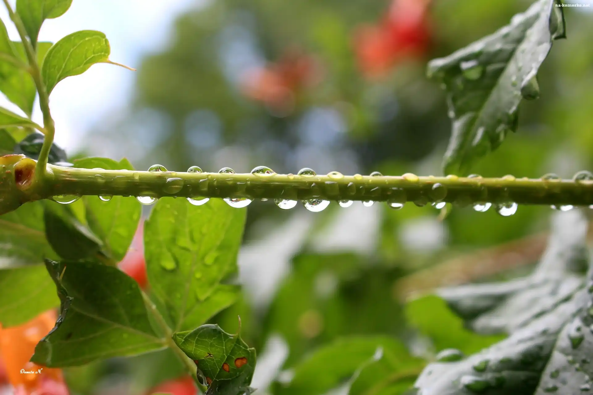 Krople, Liście, Deszczu, Gałązka na Komórkę
