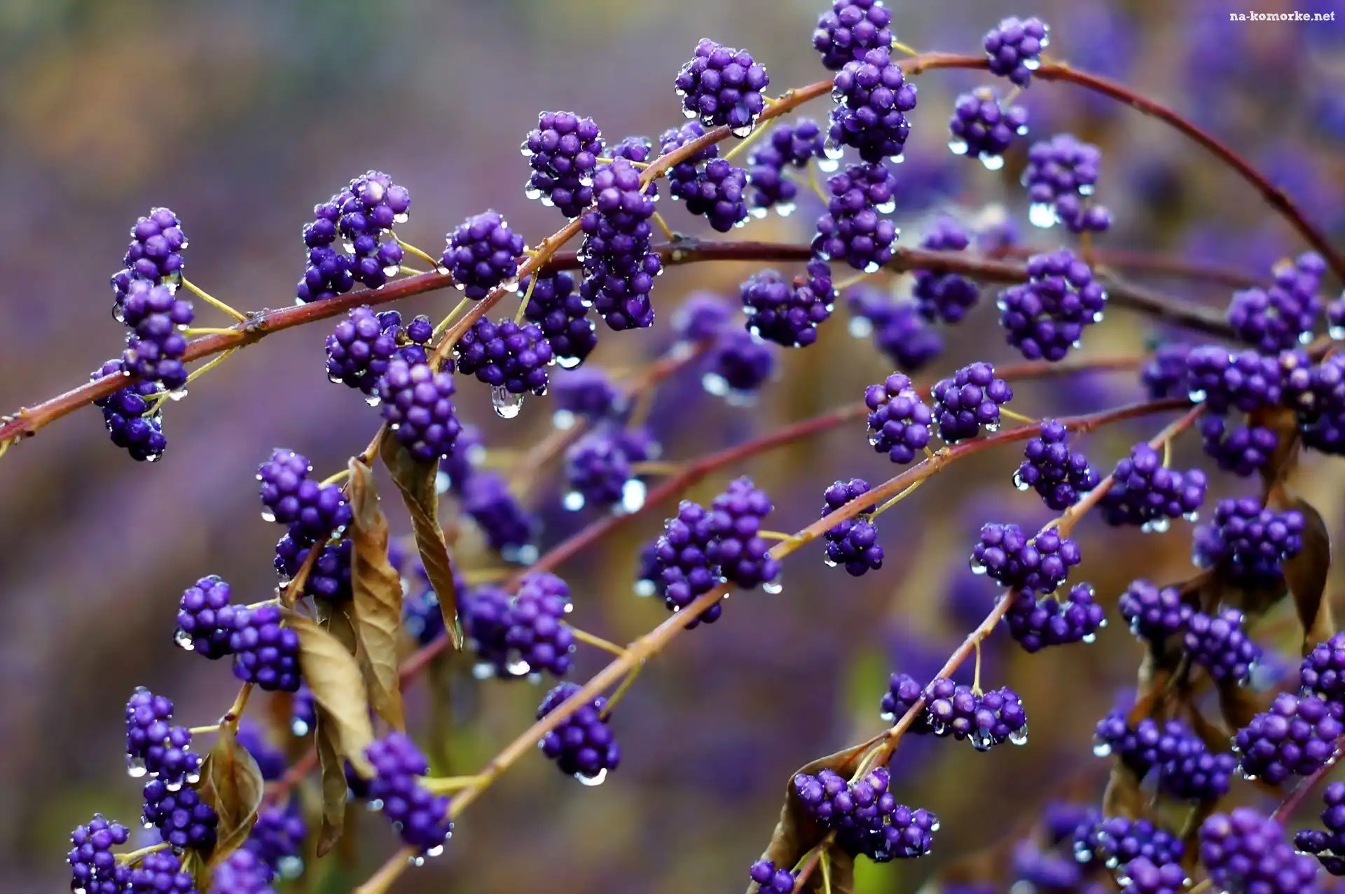Krople, Makro, Fioletowe, Jagody, Gałązki na Komórkę