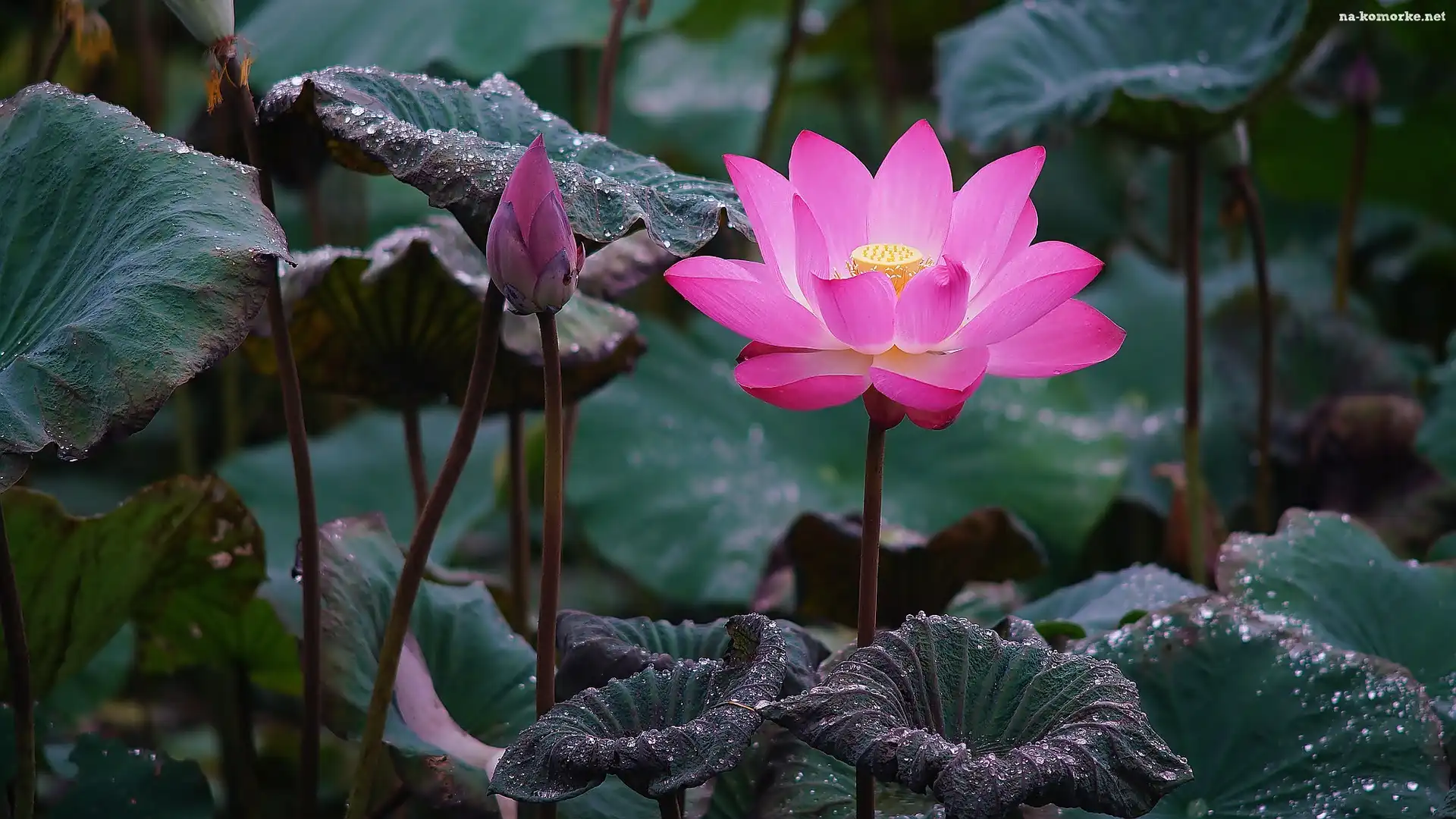 Krople, Lotos, Kwiat, Pąk, Liście na Komórkę