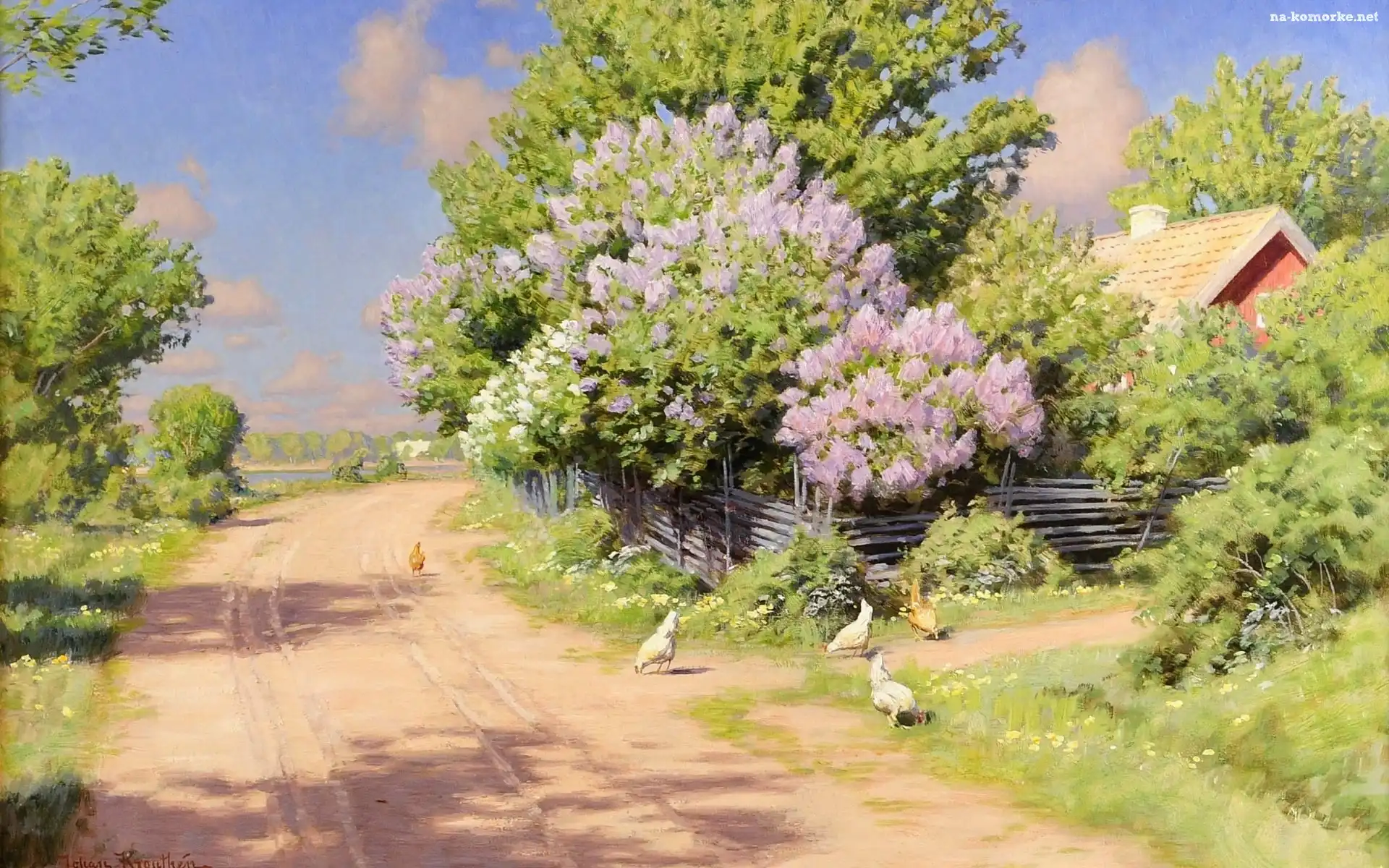 Johan Krouthen, Wieś, Droga, Olej, Wiosna, Obraz na Komórkę