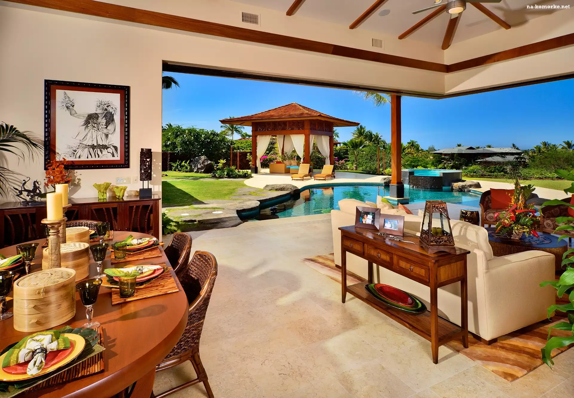 Salon, Krzesła, Fotele, Stół, Ława, Basen, Altana na Komórkę