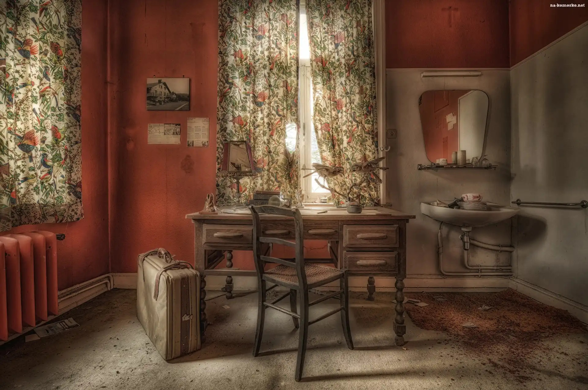 Krzesło, Wnętrze, Retro, Okna, Biurko, Walizka na Komórkę